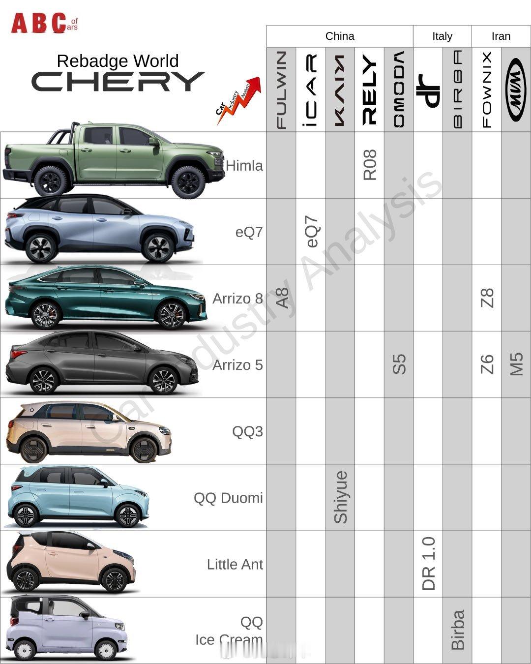 你很难想象奇瑞有这么多品牌!如何理解奇瑞集团打造的复杂品牌和产品体系?中国第四大汽车制造商是换标高手。目前,该公司在全球拥有12个不同的品牌,此外还有许多本地品牌为其贴牌生产汽车。奇瑞