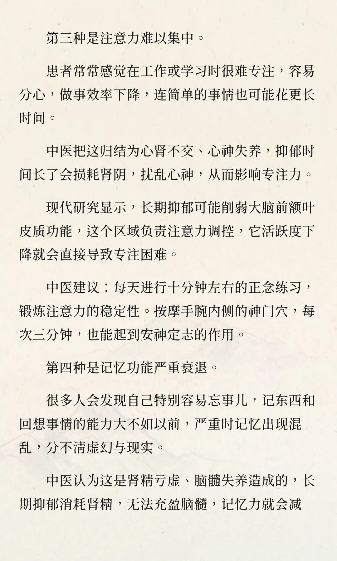 中医 抑郁 脑部供血不足 负面情绪会攻击身体器官 脑雾的成因 心理问题 注意力分散 心理医生 关注精神心理健康