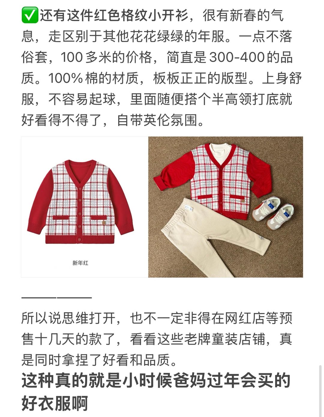 所以说思维打开,也不一定非得在网红店等预售十几天的款了,看看这些老牌童装店铺,真是同时拿捏了好看和品质。 这种真的就是小时候爸妈过年会买的好衣服啊