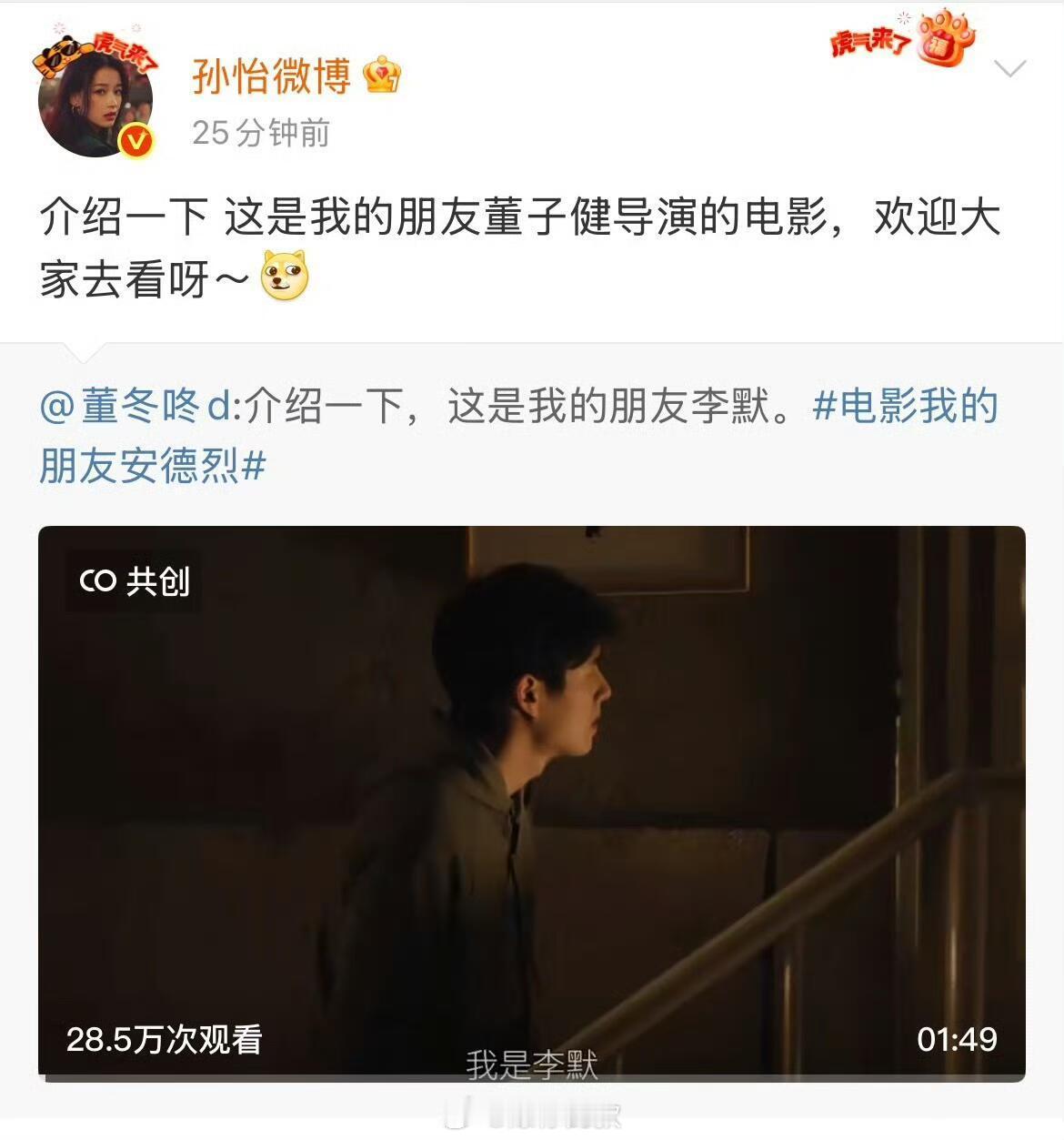 孙怡宣传董子健电影 “我的朋友董子健”