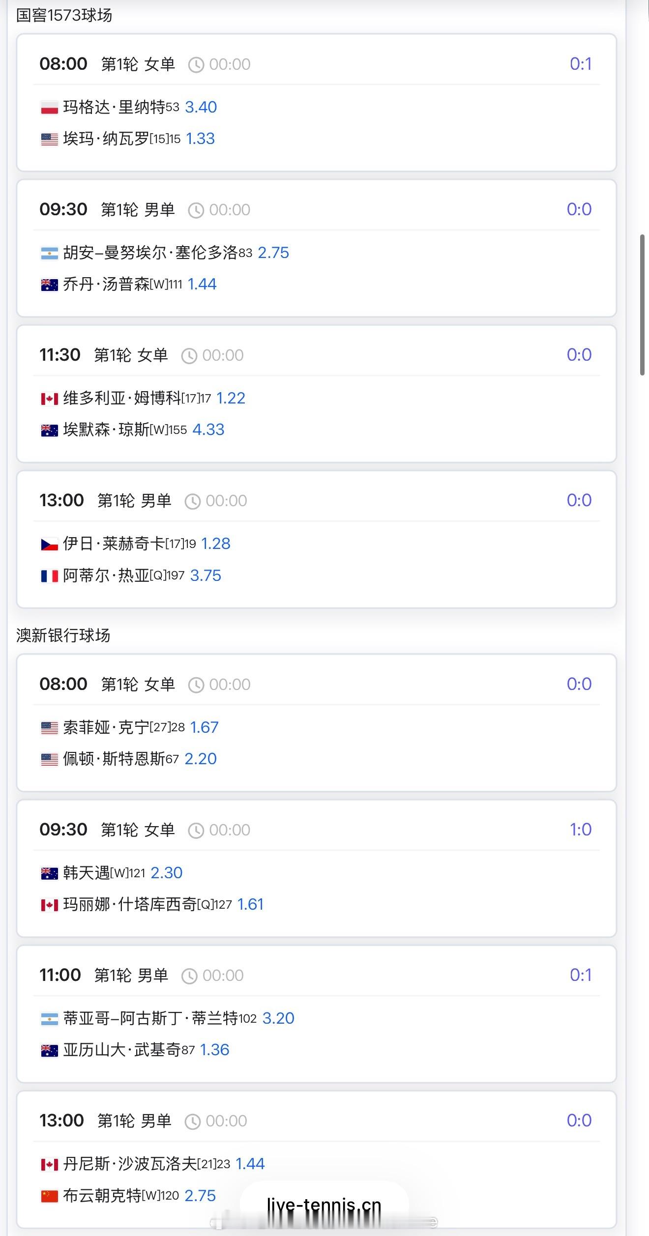 【1 月 19 日澳网第二日比赛赛程】8:30 高芙 vs拉希莫娃10:00 商