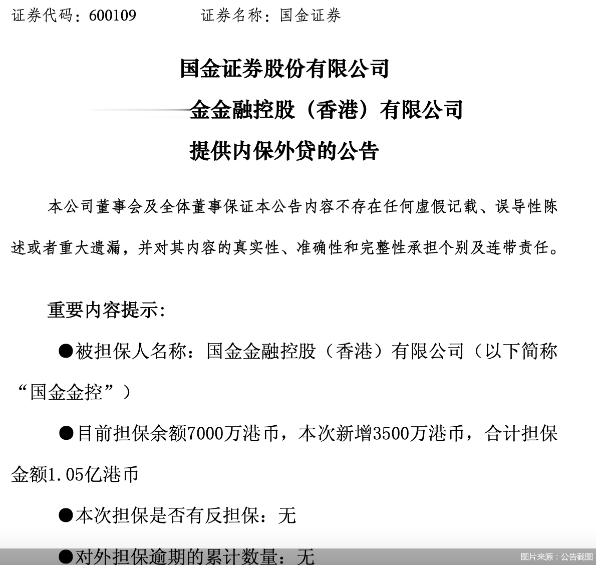 北京商报讯(记者刘宇阳实习生姚榕琰)1月18日,国金证券发布公告称,为支持全资子公司国金金融控股(香港)有限公司(以下简称“国金金控”)发展,国金金控拟向平安银行申请银行贷款,国金证券拟通过内保外贷为上述融资提供担保。公告显示,国金证券目前对国金金控的担保余额为7000万港币,本次新增3500万港币,合计担保金额1.05亿港币。