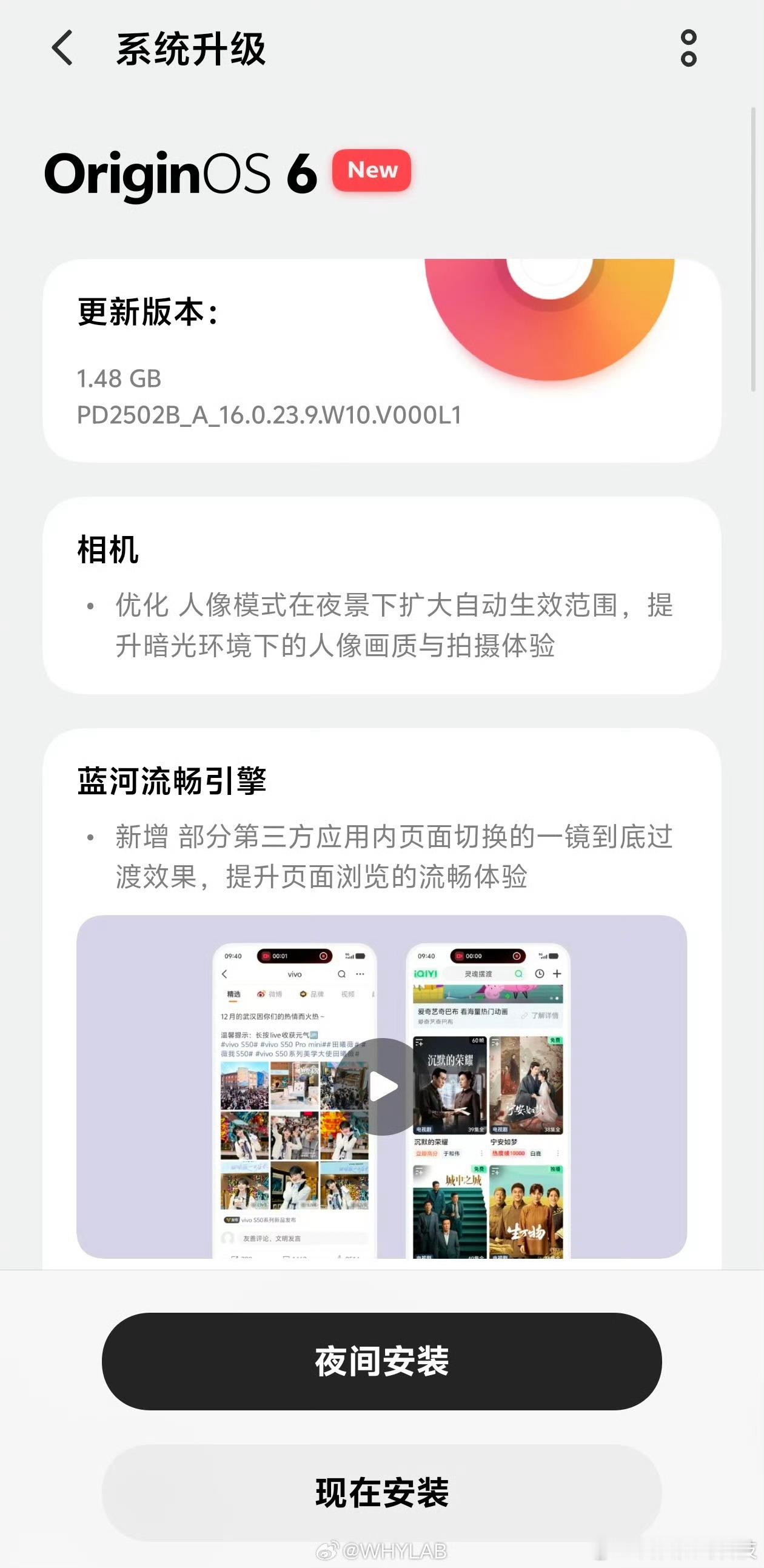 蓝厂 OTA 节奏挺快的,OriginOS 6 这个月的新包来了,更新的内容还是