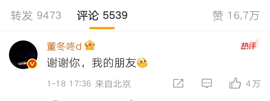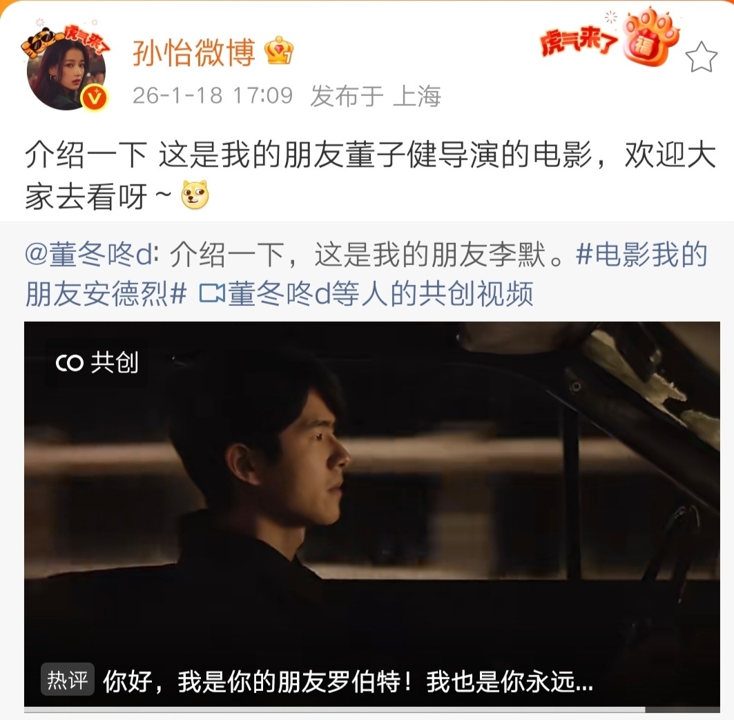 孙怡主动发微博安利董子健的导演新作,董子健暖心回应,成年人的分开,不是只有狗血和拉扯,也可以是彼此成就。 ——“我的朋友”