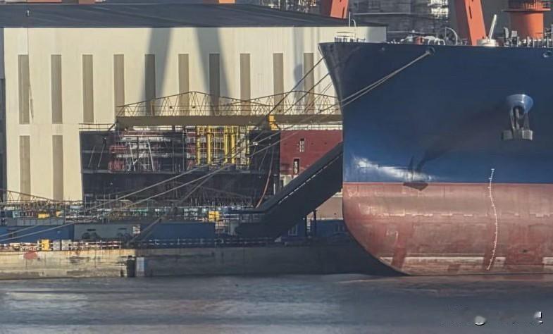 直到这里,机库仍然保持着最大宽度,再往前就要收窄了。虽然暂时不知道机库的尺寸,但直观的感觉就是大,不是一般的大。其实这是废话,12万吨+能不大嘛,哈哈!