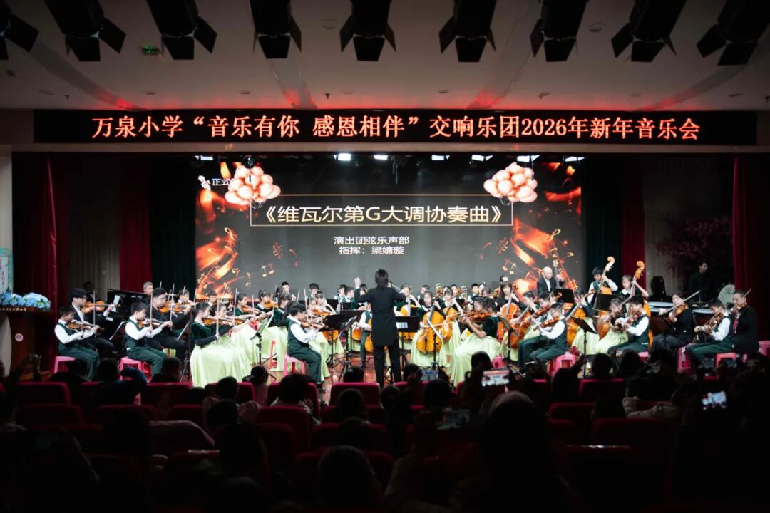 马蹄踏雪辞旧岁,弦歌逐梦启新程。当2026年第一缕曙光洒满大地,万泉小学交响乐团新年音乐会在温馨团圆的氛围中如期举行。这场汇聚了经典与创新,激情与温情的音乐盛宴,不仅为现场领导、家长和师生们带来了极致的听觉享受,更展现了万泉小学深厚的校园文化底蕴与艺术教育成果。