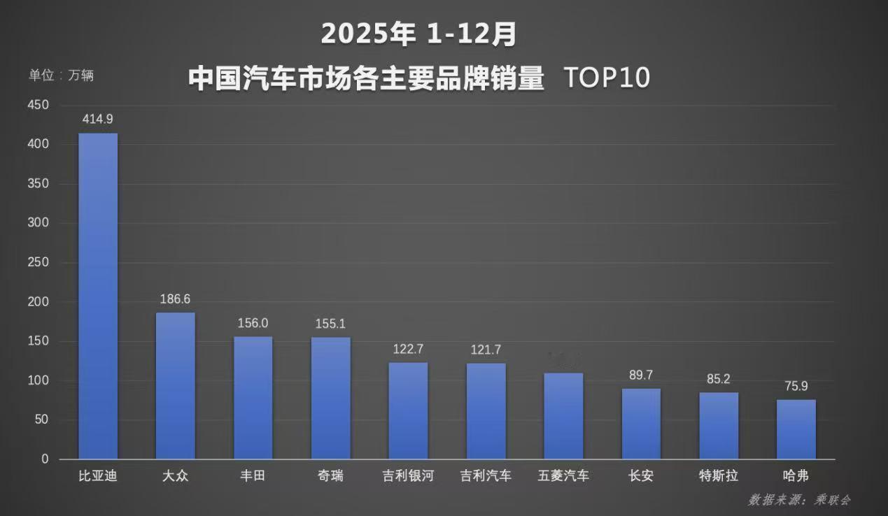 2025年的中国汽车年度成绩单正式揭晓啦,几家欢喜几家愁!有厉害的,比如比亚迪,人家在品牌销量、新能源销量及集团总销量等多个核心维度全面领先,连续第四年夺得全球新能源汽车市场销量冠军,以实力问鼎全球市场。 2025年,迪子的集团累计销售460.24万辆,再创年度销量新高,同时于12月完成第1500万辆新能源汽车下线,成为国内首个达成这一里程碑的车企。旗下王朝与海洋系列产品矩阵协同发力,秦、元、海豹、海狮等多款车型在细分市场表现稳健,为全年销量提供了坚实支撑。高端化进程同样取得突破,方程豹、腾势、仰望等子品牌销量均创历史纪录,占集团整体销量比例由2024年的4.5%提升至8.7%,产品结构持续向上突破。 在海外市场,比亚迪2025年乘用车及皮卡累计出口104.96万辆,同比增长145%,首次实现海外年销量突破百万。目前其新能源汽车已进入119个国家和地区,在巴西、英国、德国等重点市场销量与品牌影响力同步攀升。 2025年,中国汽车产销规模突破3400万辆,持续领跑全球。在新能源与智能化双轮驱动下,以比亚迪为代表的中国汽车品牌正从市场引领者逐步迈向行业标准的定义者,全球影响力不断提升。