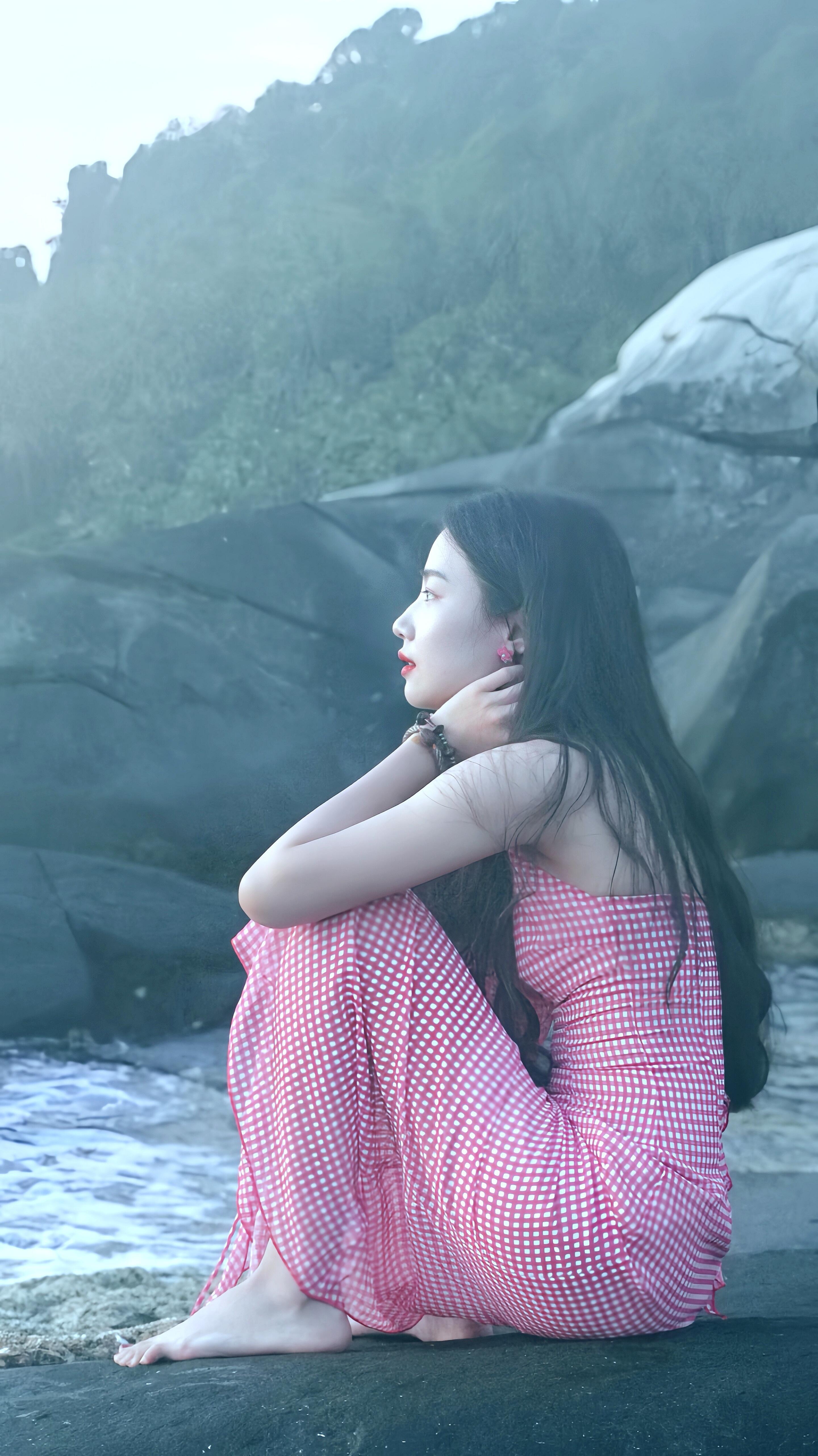 卢昱晓海边拍照