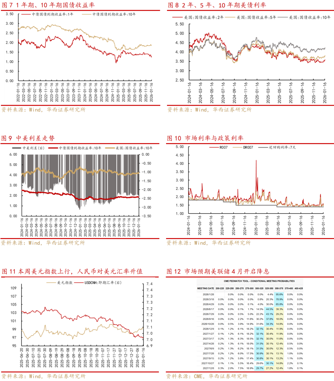 四、A股慢牛趋势不变,1月下旬年报业绩预告密集披露期,关注业绩高增或景气改善的方向。一是宏观政策来看,2026年作为十五五开局之年,多部门密集出台配套产业政策和投资规划,本周央行推出货币金融政策“组合拳”定向支持重点领域,并强调“今年降准降息还有空间”,经济开门红预期将继续支撑风险偏好;二是保险资金等中长期资金入市、居民资金入市、汇率升值驱动下的外资回流等增量资金仍有空间;三是基本面预期与产业周期来看,随着PPI降幅收窄,预计2026年企业盈利进入温和复苏通道,对盈利拐点的博弈将成为行情的重要支撑。1月下旬企业2025年报业绩预告将密集披露,可重点关注年报业绩预告高增长或扭亏方向的机会。