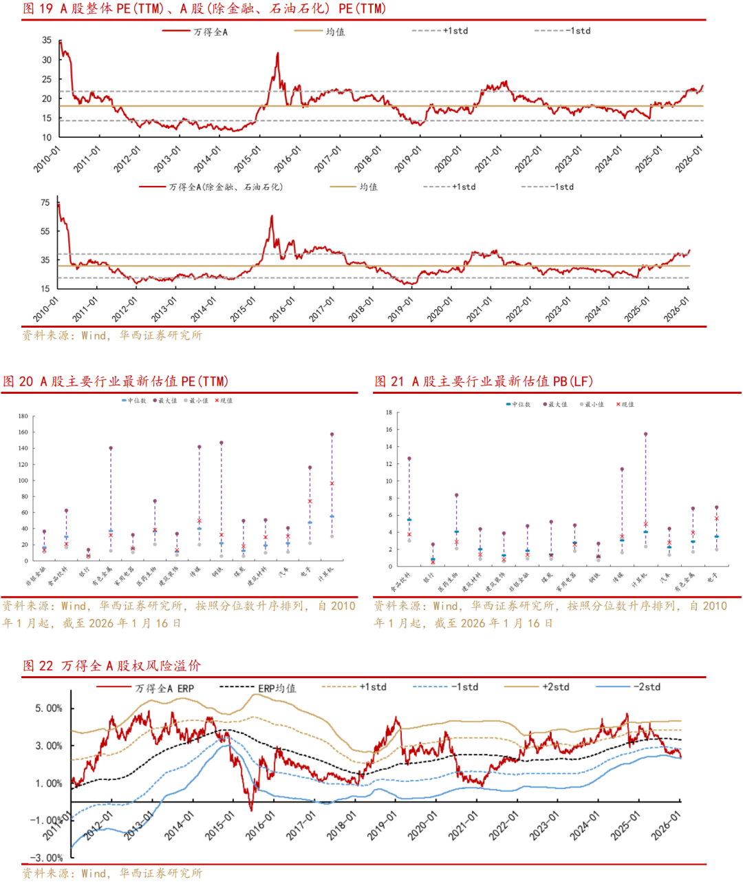 一、春季行情的交易热度快速攀升,监管层释放降温信号后沪指从单边上涨转向高位震荡。本轮春季行情自12月17日启动至今,多路增量资金先后入市:12月机构资金抢跑,A500相关ETF大规模入市;1月起融资资金、外资加速流入推动指数一路上涨,A股日成交额一度创下约近4万亿元的天量,融资余额突破2.7万亿元,积累一定交易过热风险。随着监管层多次释放降温信号,沪指从此前的单边上涨转向高位震荡,行情斜率有望放缓。与此同时,万得全A日成交额仍位于3万亿元附近,反映投资者风险偏好仍处高位,市场牛市思维延续。