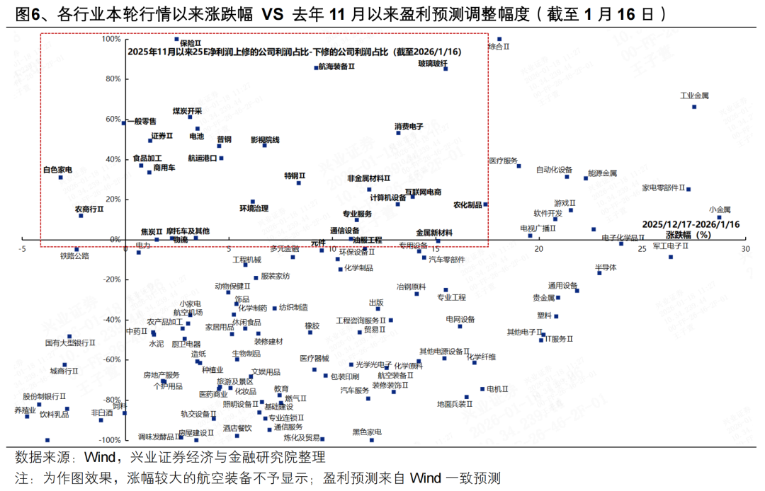 去年11月以来盈利预测上修较多的行业主要集中在: