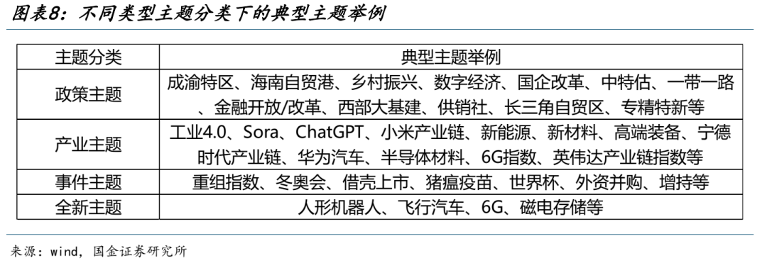 所以总结而言对于政策类和产业驱动型主题而言,业绩兑现是主题是否终结的核心因素;对于全新主题和事件驱动型主题而言,交易热度以及监管收紧对行情的影响更大。