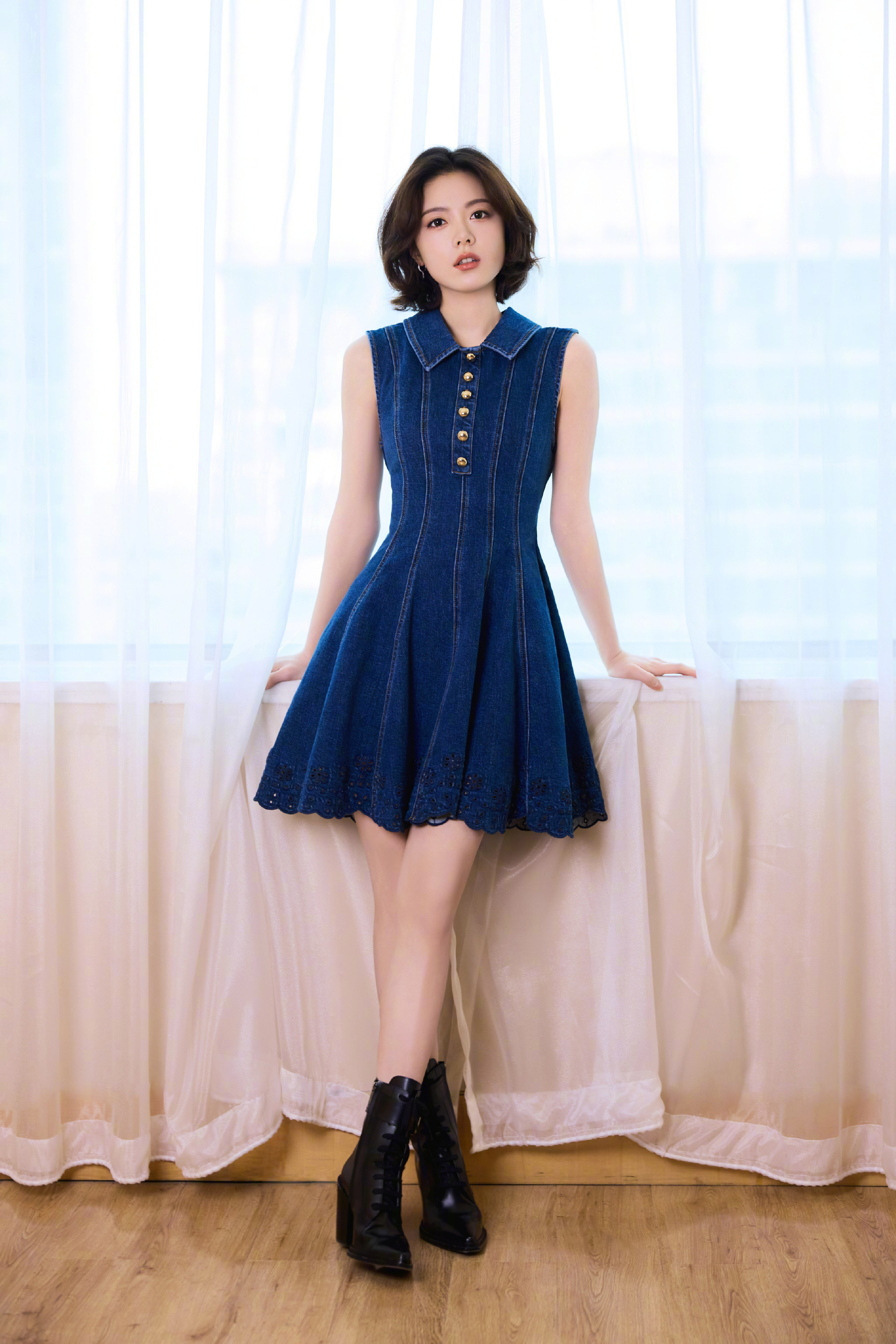 赵今麦 今日「骄阳似我」庆功宴造型图集,牛仔连衣裙配短发,俏丽可人的少女气质。📷🪭 时尚灵感解读赵今麦庆功宴出图了