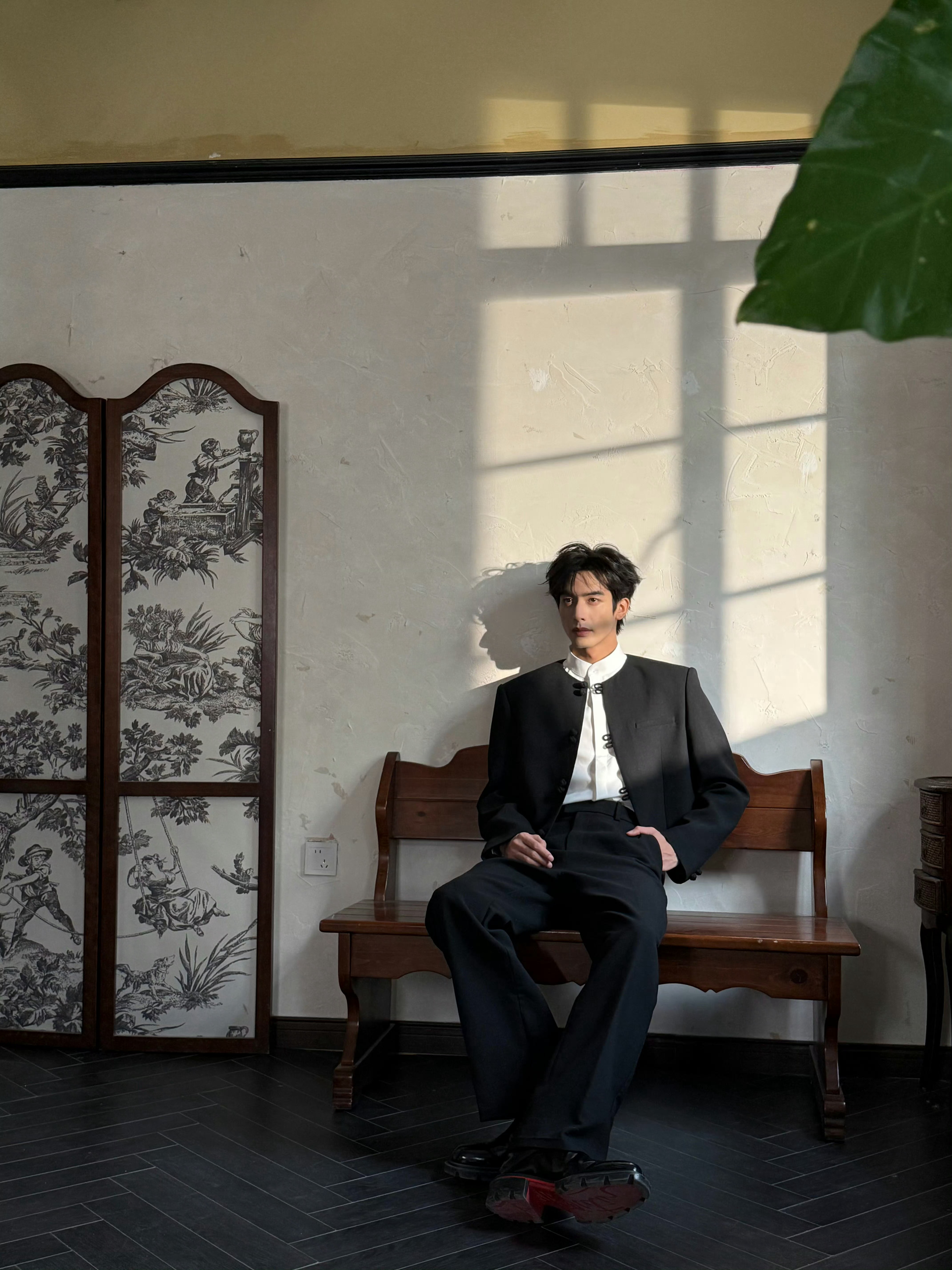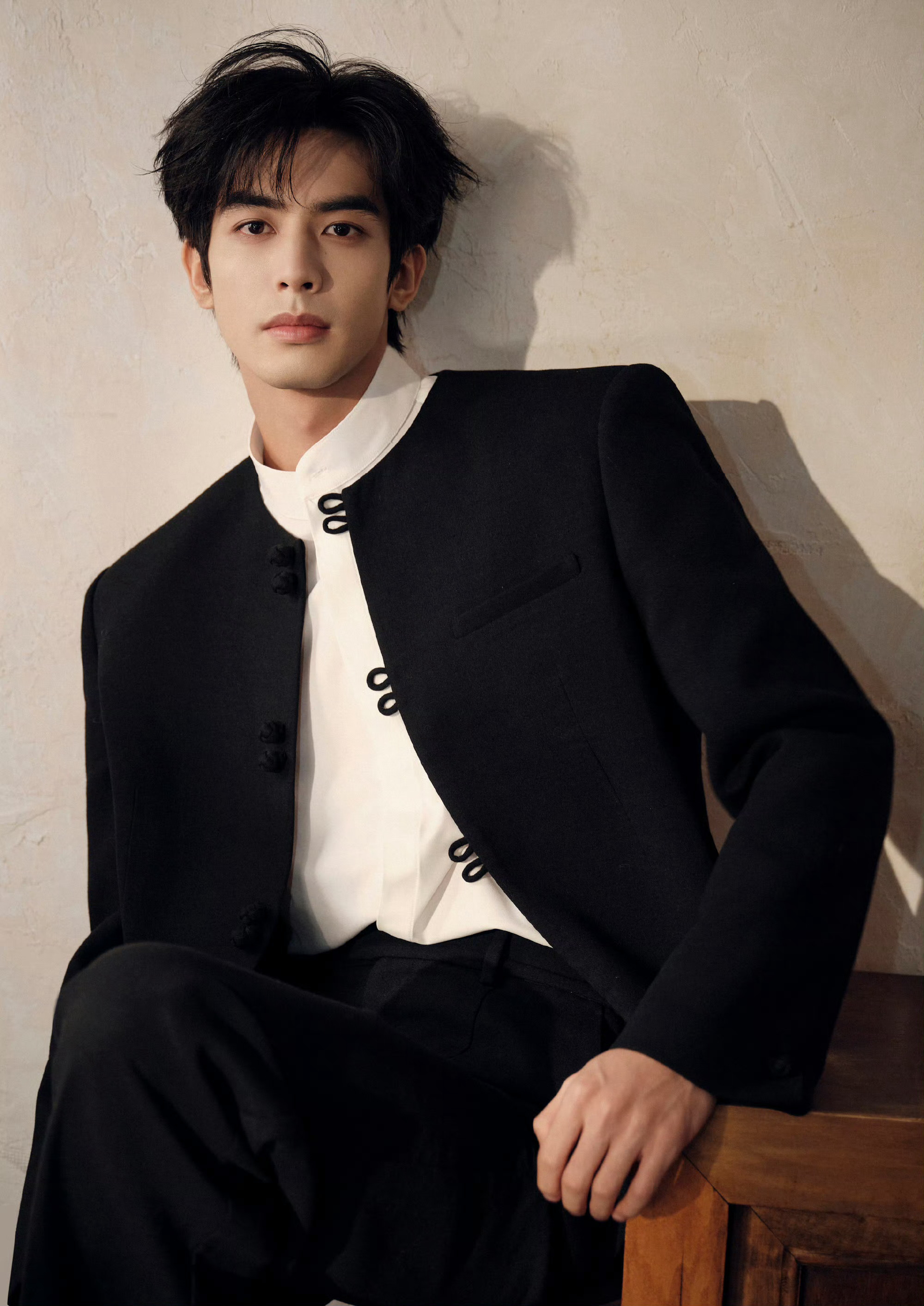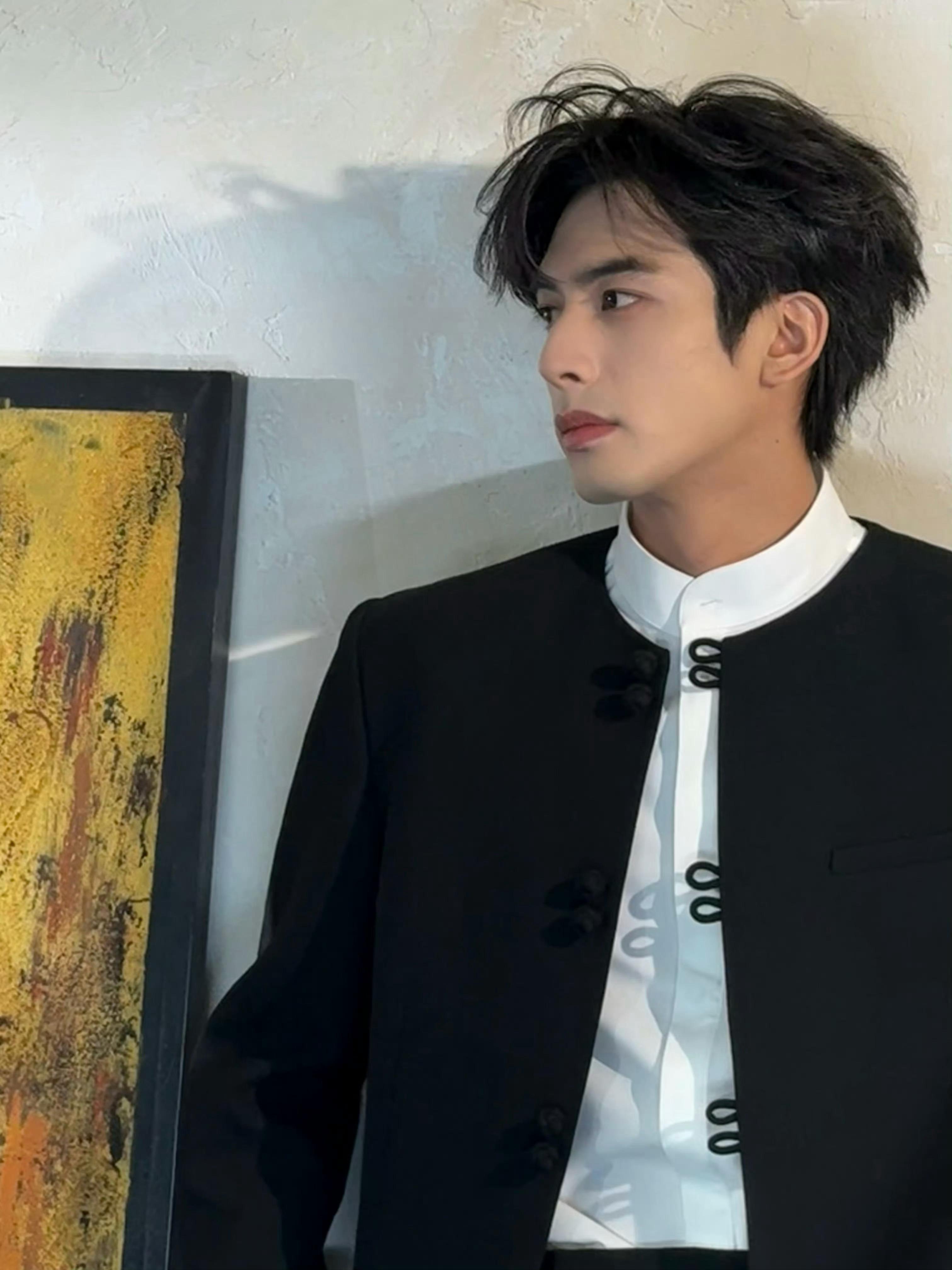 宋威龙 今日《骄阳似我》庆功会造型,身着新中式黑色套装亮相,盘扣、白衬衫、红底鞋… 英俊倜傥的东方绅士,果然是红气养人~ 风格大赏时尚灵感解读