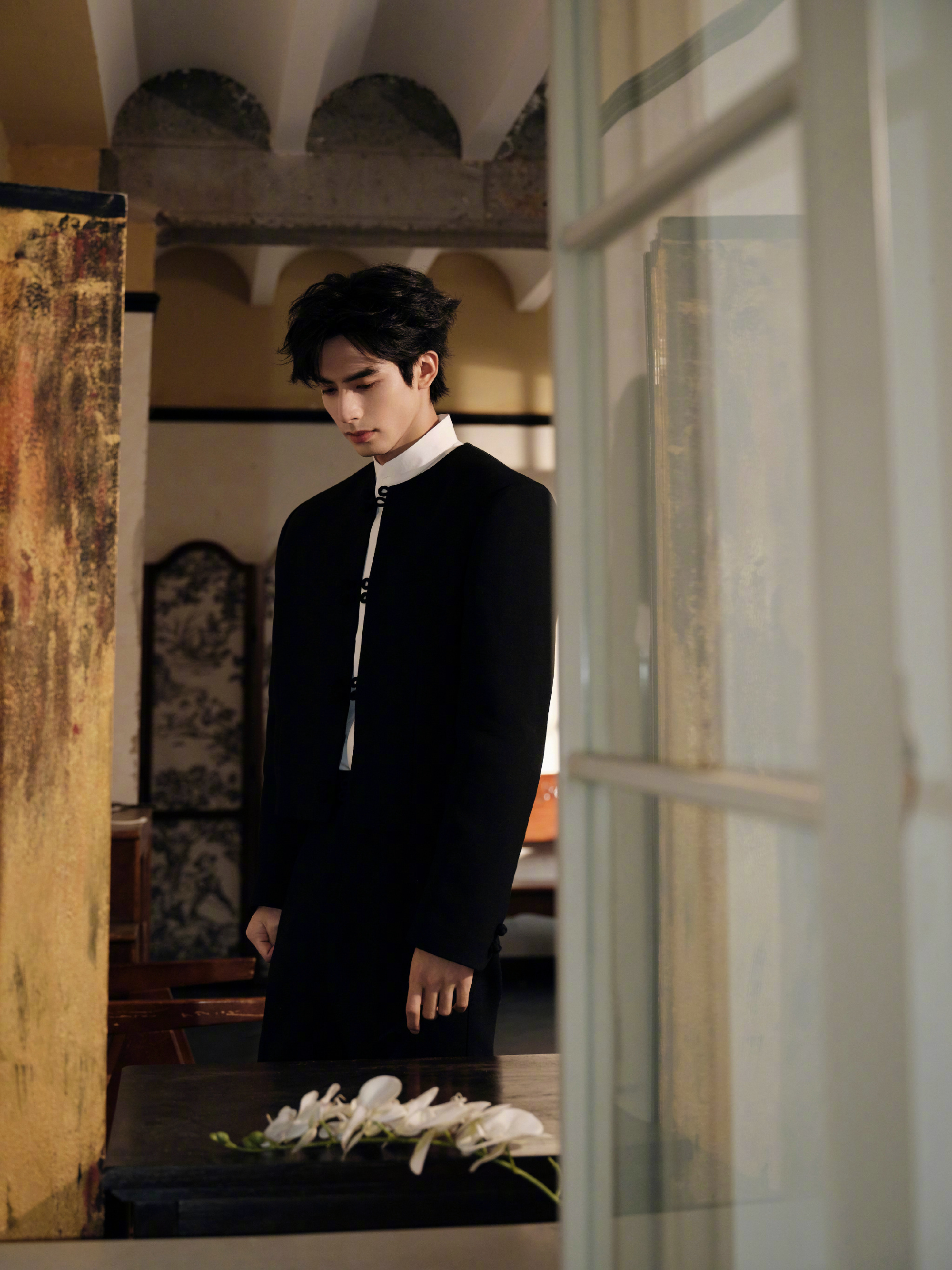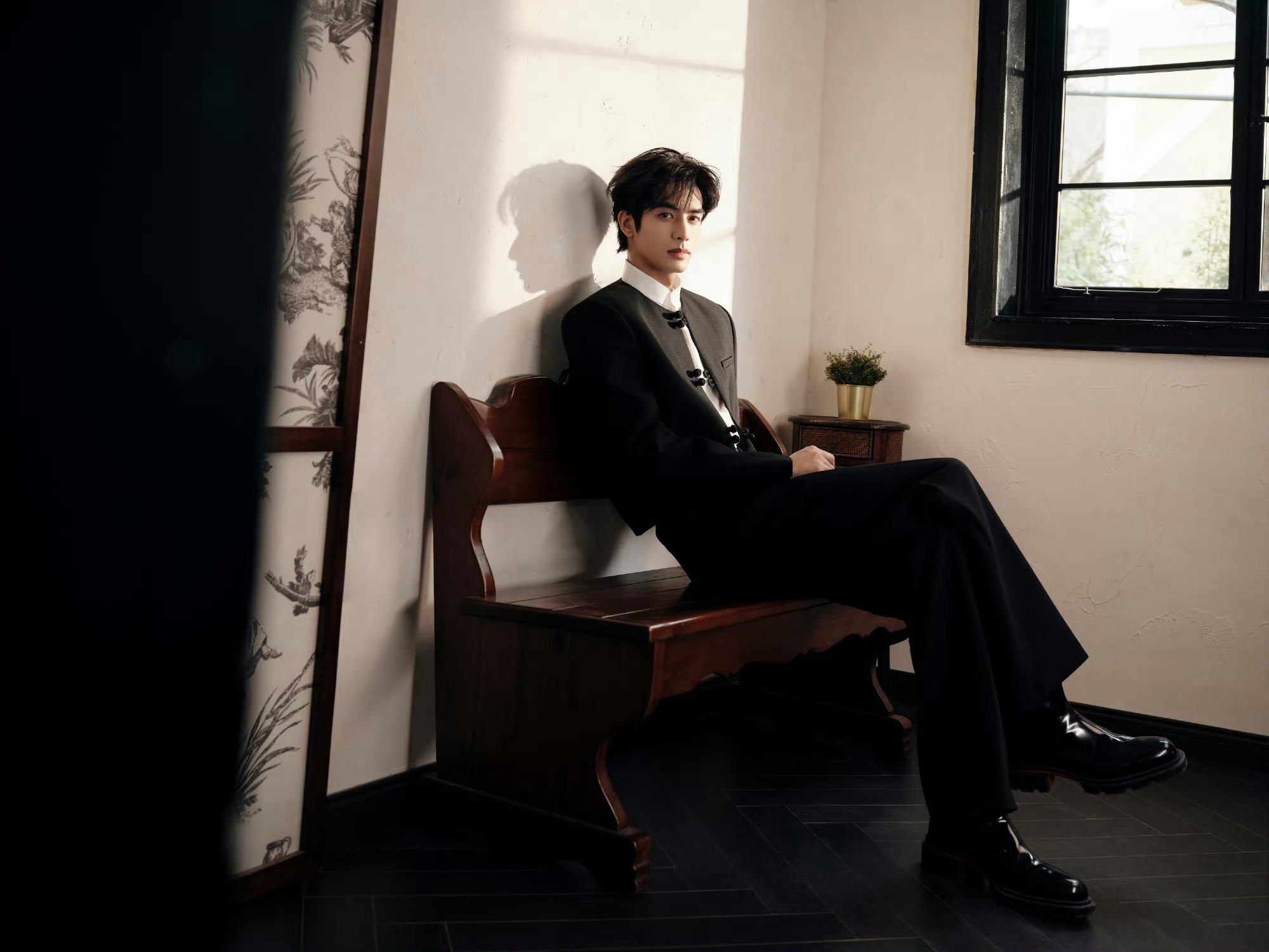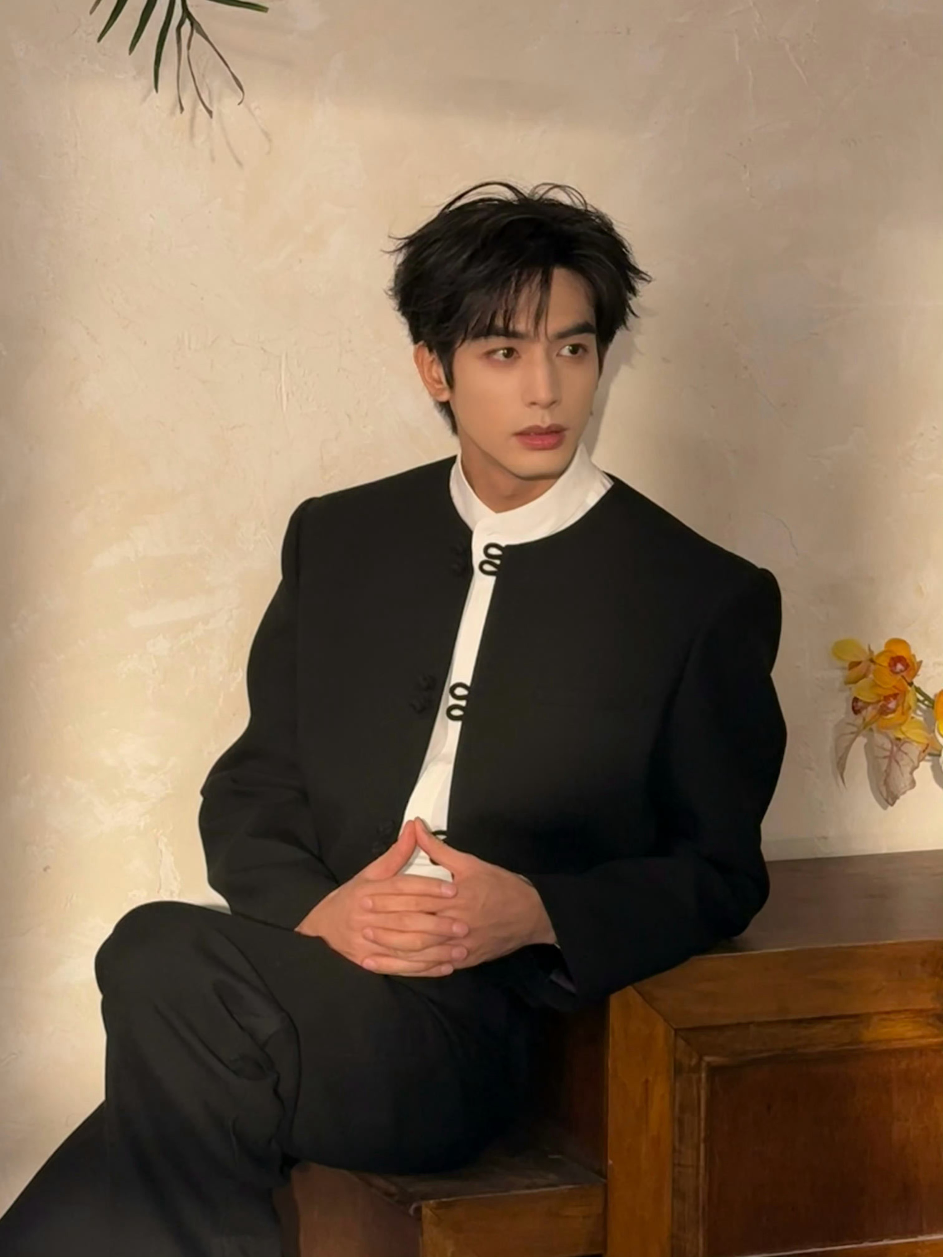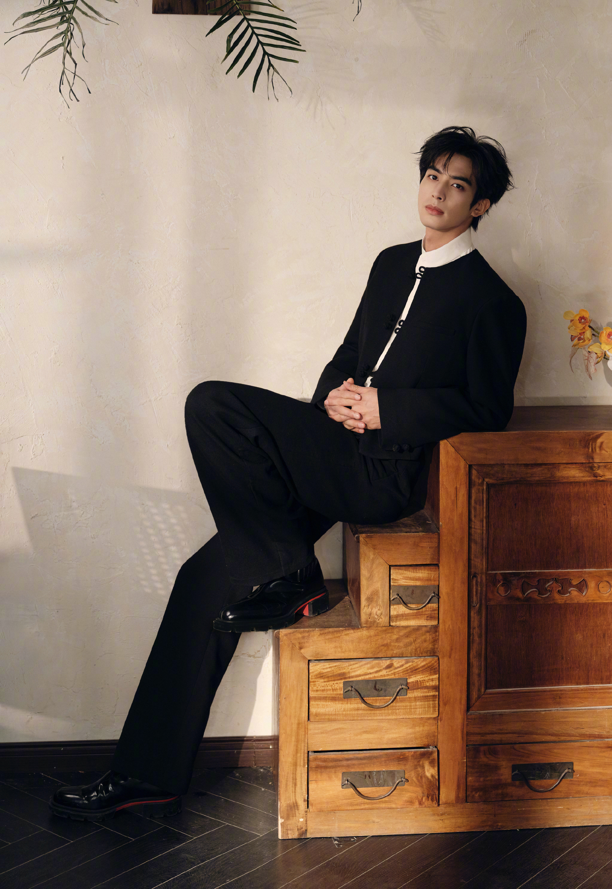 宋威龙 今日《骄阳似我》庆功会造型,身着新中式黑色套装亮相,盘扣、白衬衫、红底鞋… 英俊倜傥的东方绅士,果然是红气养人~ 风格大赏时尚灵感解读