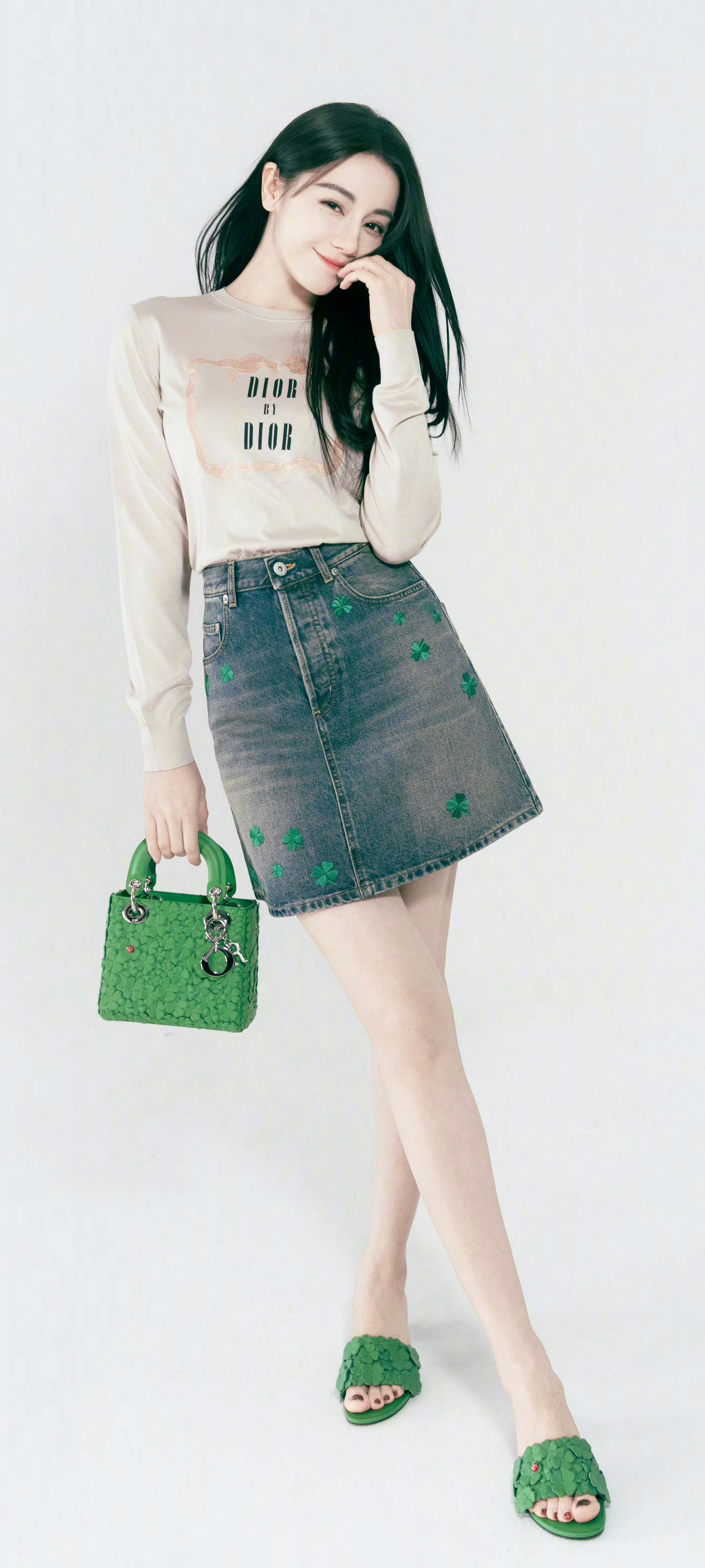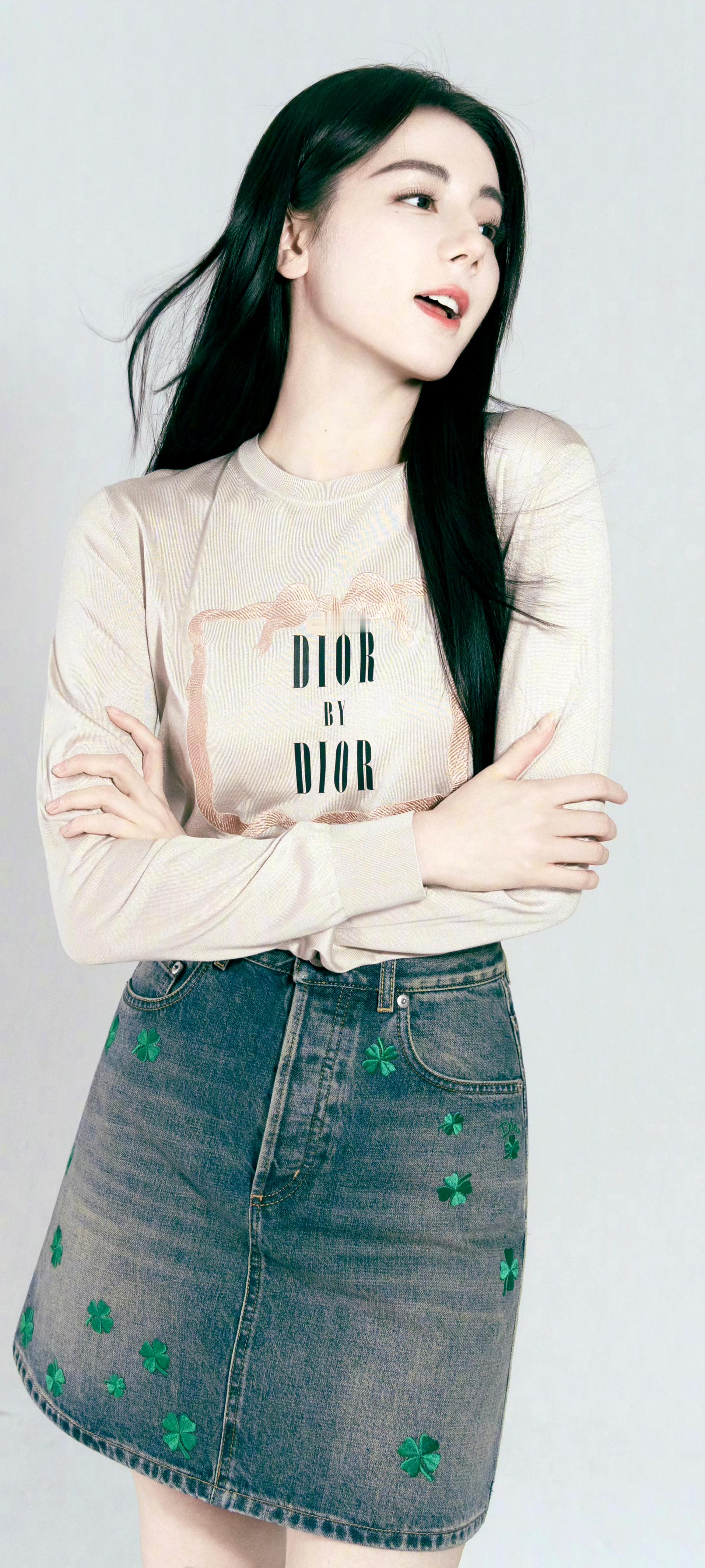 迪丽热巴 人是真的美,穿搭是真的清爽,头发还泛着浅浅的绿光~💚💚💚迪丽热巴