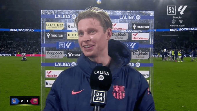 虎扑01月18日讯西甲第20轮,巴萨客场1-2不敌皇家社会。赛后,德容接受采访。