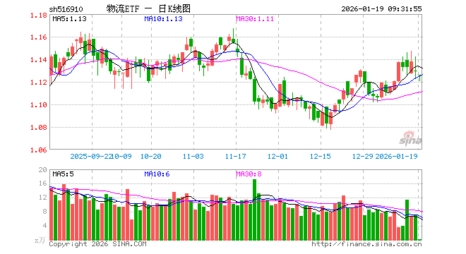 1月19日,物流ETF(516910)开盘跌0.35%,报1.126元。物流ETF(516910)重仓股方面,中远海控开盘跌0.28%,顺丰控股涨0.00%,圆通速递涨0.65%,招商轮船涨0.53%,京沪高铁涨0.00%,大秦铁路跌0.20%,蔚蓝锂芯涨0.00%,物产中大跌0.35%,建发股份跌3.71%,中远海能涨0.29%。