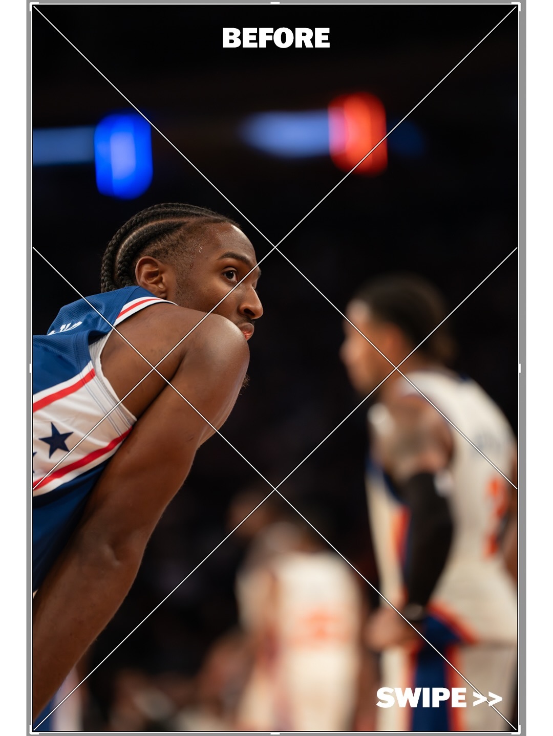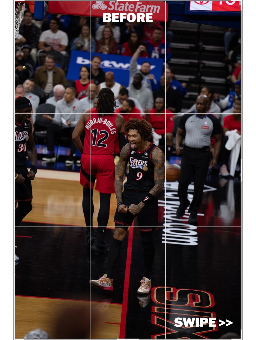 赛事图集!It's an art!费城76人队官方分享一组球队赛事现场拍摄的编辑前后对比酷图!费城76人篮球年末狂欢季PaulGeorge保罗乔治