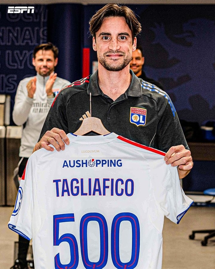 直播吧1月19日讯效力于里昂的阿根廷球员塔利亚菲科完成俱乐部生涯500场里程碑,俱乐部向他送上纪念球衣致敬。