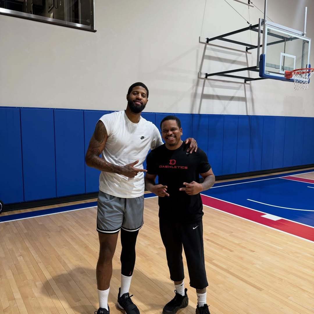 训练师Dashletics更新社媒动态,分享了两张与保罗·乔治的最新合照!费城7