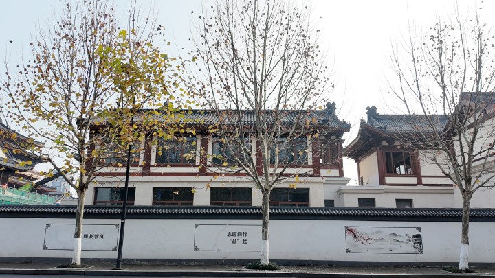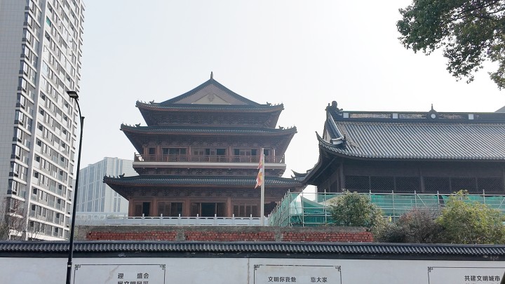 不过,现在去海潮寺,已经见不到初代“镇海禅院”的模样了,因为哪怕是遗留下来的天王殿及部分僧舍,曾经也于1861年毁于太平天国之乱的战火,而这次的项目复建,整体遵循了“新包旧”理念——大部分是新建的,老的被包裹其中,就不怎么容易被注意到。