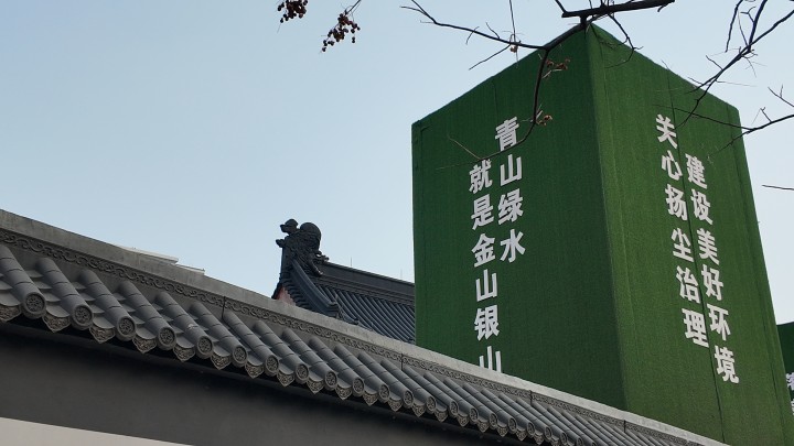 他告诉我们,建筑的木材主要用的是菠萝格防腐木,这是修建古建筑常用的一种木材,而屋顶的瓦片,有些是专门定制的,站在甬江路天桥往下看,可以清晰地看到屋檐的脊兽。