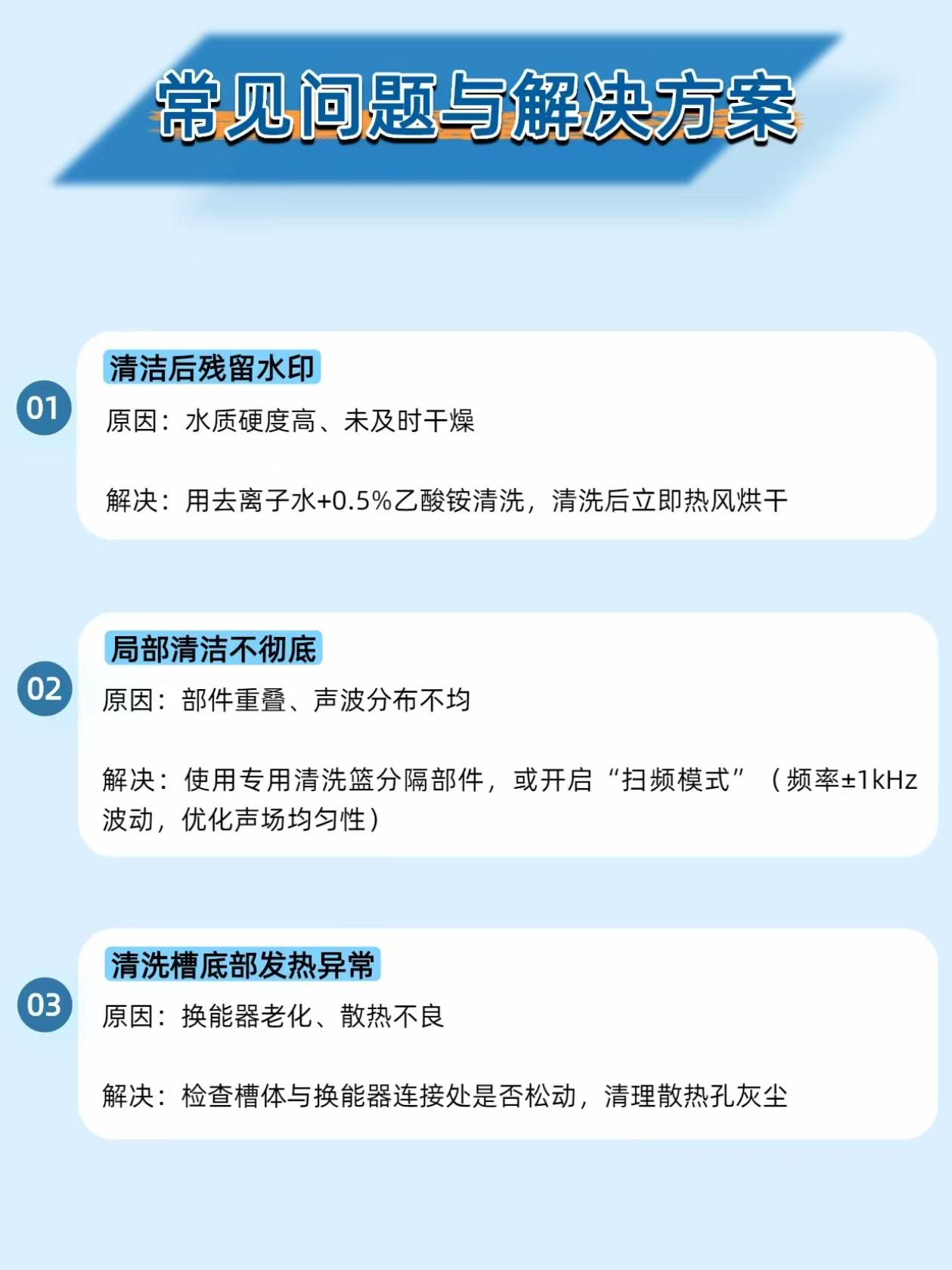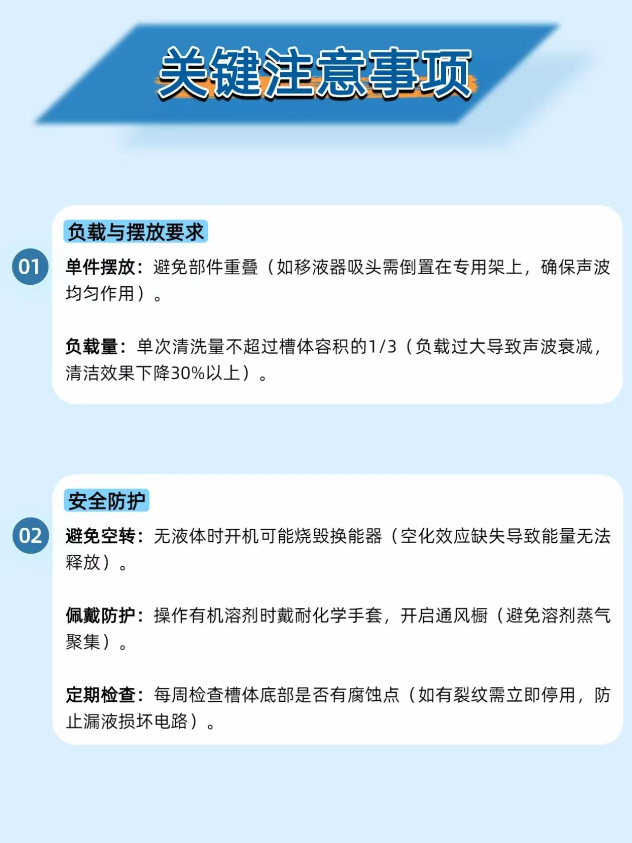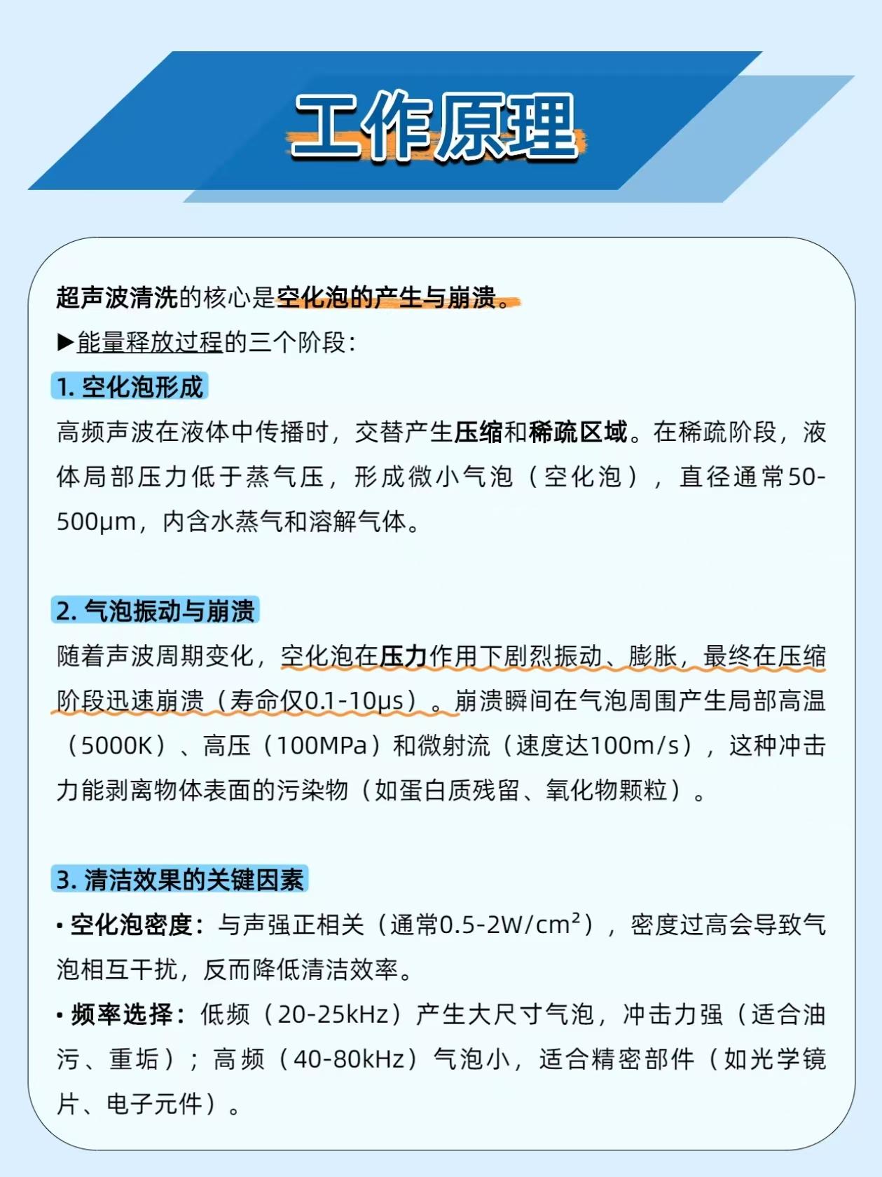 《实验器材洗不干净?这台仪器靠 “炸气泡” 搞定微米级脏东西!》 实验室里的移液枪头、色谱进样针,缝隙里的蛋白残留、油污刷都刷不到,还怕弄坏精密部件?其实超声波清洗仪才是 “清洁神队友”,靠高频声波炸出无数小气泡,崩溃时的高压冲击波直接震掉微米级脏东西,比手洗干净 10 倍还不损器材! ✅ 用对了才是神器,这几步别瞎搞! 频率选对才高效:洗油污、重垢用 25kHz 低频(气泡大冲击力强);洗光学镜片、电子元件用 40kHz 高频(气泡小不损表面) 水温加对去污猛:油污类 60-70℃(溶解度翻 3 倍),精密部件别超 40℃(防氧化) 避坑保命操作: ❌ 绝对不能空转!没液体开机直接烧换能器 ❌ 别装太满!单次清洗量超槽体 1/3,清洁力直接降 30% ✅ 洗完精密件立刻热风烘干(60℃烘 30 分钟),避免留水印 👉 这些场景直接封神! ✅ PCR 管 / 离心管:震掉内壁 DNA 残留,实验背景信号直接拉低 ✅ 色谱进样针:清掉针尖缝隙样品残留,避免交叉污染 ✅ 培养皿 / 移液管:搞定贴壁细胞残骸、培养基结晶,无菌培养稳了 别再手刷器材到崩溃!超声波清洗仪选对参数,清洁效率直接起飞!