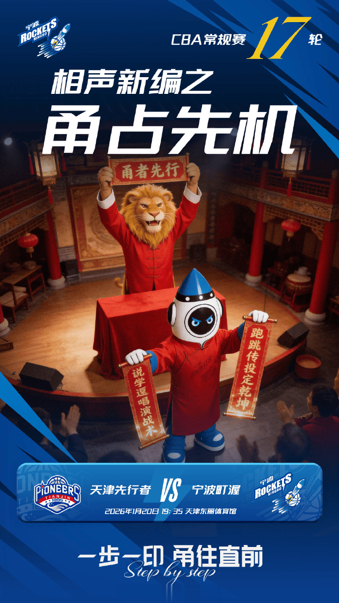 赛前,宁波男篮分享对阵天津男篮海报:相声新编之甬占先机。
