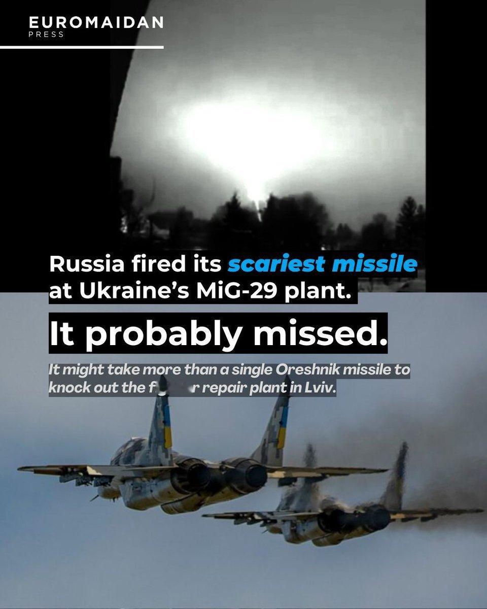 俄罗斯向乌克兰利沃夫的米格-29战斗机修理厂发射了其“最可怕的”导弹。但它可能没有击中目标。“奥列什尼克”导弹的 36 枚子弹药每枚只有 50% 的概率落在目标 200 米以内。“弹头分离后会依靠重力下落,”导弹专家法比安·霍夫曼解释说——没有单独的制导,只是快速下落。2022年,俄罗斯曾用巡航导弹袭击过这家工厂,导致维修工作一度停滞。该工厂占地一平方公里,易损易毁。部队人员充足。从波克罗夫斯克到库尔斯克,轰炸俄军阵地的米格-29战斗机将继续飞行。俄乌战争俄乌局势新进展