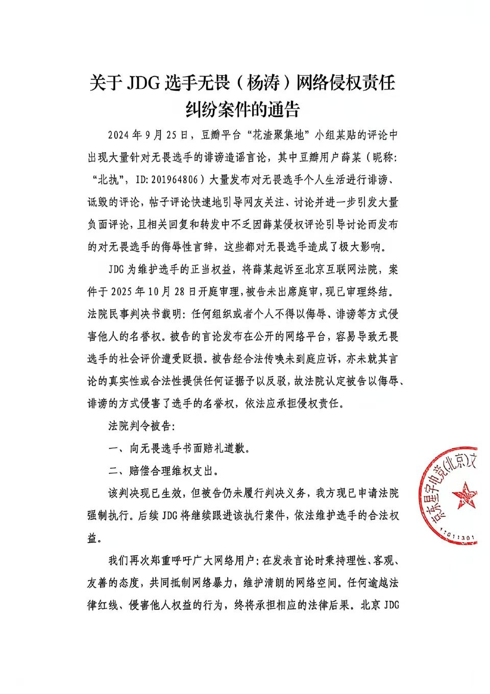 无畏网络侵权后续jdg发布关于无畏侵权后续声明 支持维权保护选手