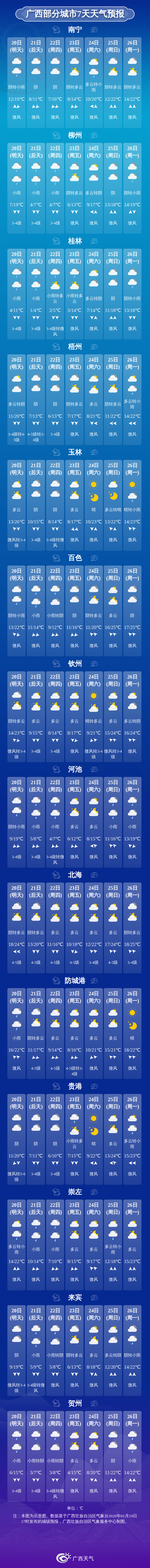未来3天天气预报广西气象台19日17时发布预报:寒潮三级预警