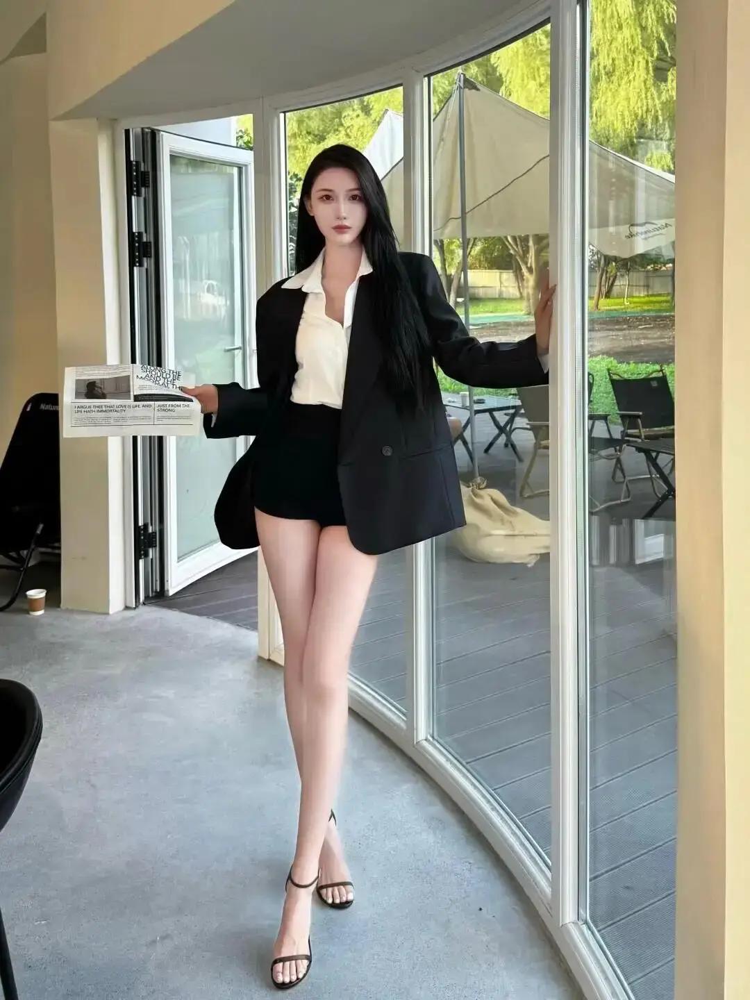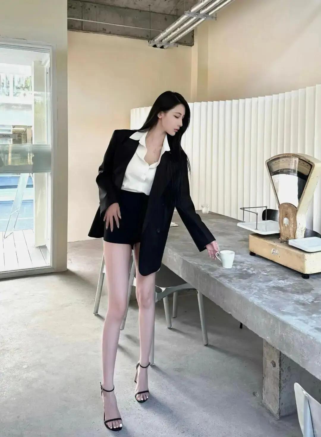 优雅职场风,黑白灰穿搭,自信满满!长腿可以穿短裤、短裙、西裤、牛仔裤等,但不一