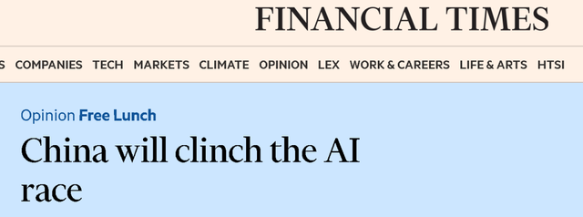 《金融时报》还提到了中国在稀土资源和加工上拥有的强大优势,并由此指出中方如今拥有的是一个覆盖AI发展的全生态链——这比只关注一个大模型的得分要重要得多。