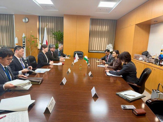 新任印度驻日大使纳格玛·M·马利克拜会日本经济安全大臣小野田纪美双方就经济安全、