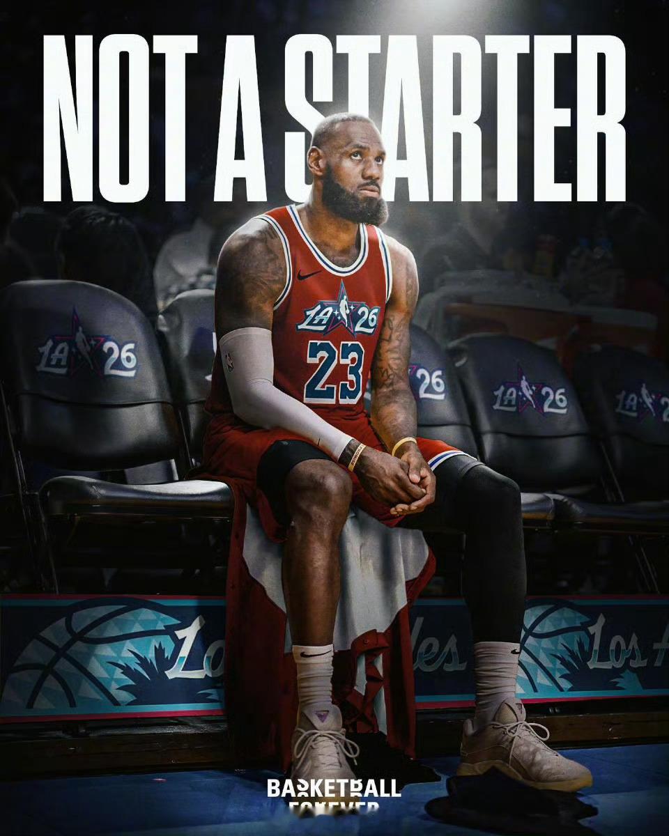 2026NBA全明星东部首发詹姆斯连续21年入选全明星首发记录终结。附上上次没有
