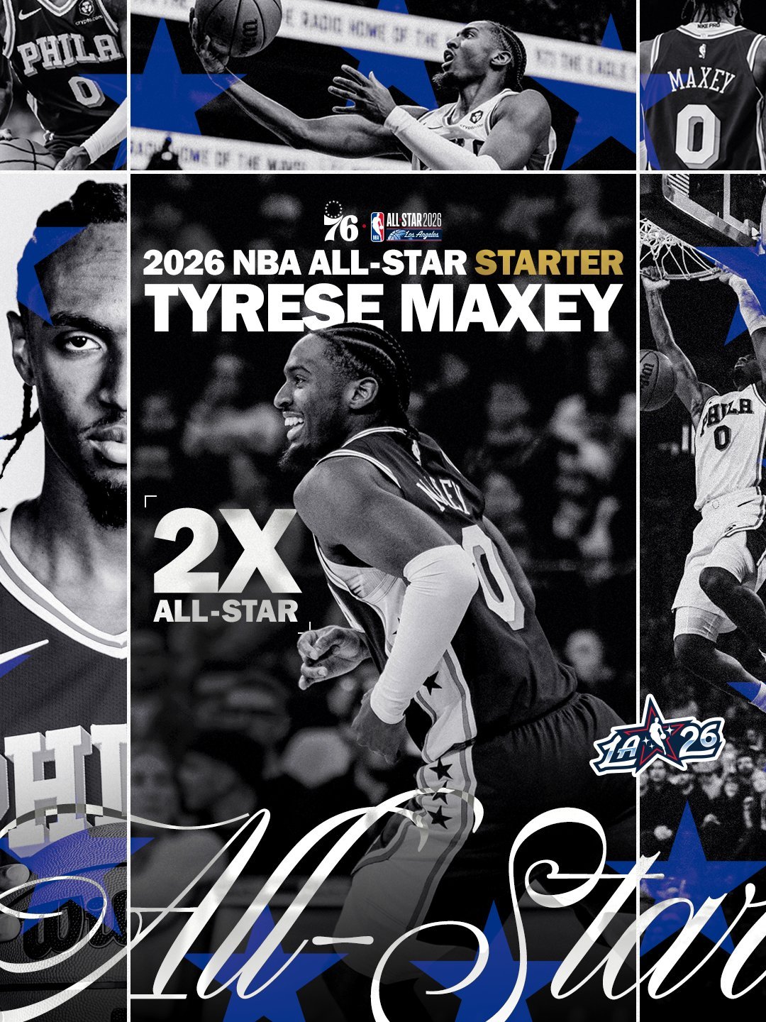 东部全明星首发!恭喜第二次入选NBA全明星…费城76人队后卫泰雷斯·马克西🎉作为2020年肯塔基大学出身的第21顺位新秀,马克西本赛季为76人队场均贡献30.3分、4.4个篮板和6.7次助攻。费城76人新赛季篮不住2026NBA全明星