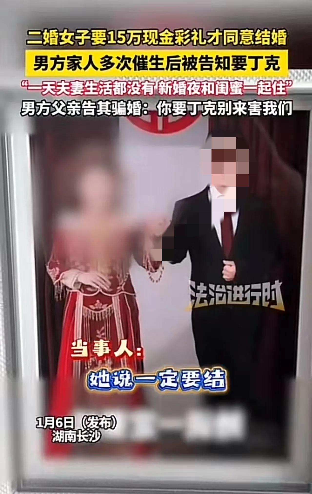 男子花15万彩礼娶回二婚的妻子,婚前女方拍着胸脯承诺婚后会尽快备孕生子,圆了老两口抱孙的心愿,可彩礼刚如数给到女方手中,对方却突然翻了脸,直言自己早就打定主意丁克,此前的话不过是为了顺利成婚。更让男方心寒的是,新婚当夜,本该是二人的甜蜜时刻,女方却撇下他独自回了房间,转头叫来了闺蜜同住,两人挤在婚床上说说笑笑,把他这个新郎晾在客厅,一夜无话,婚后更是连一天真正的夫妻生活都没有过。 男方找到女方讨要说法,语气里满是委屈和愤怒,他说自己掏光了家里多年的积蓄,又借了不少外债才凑齐这15万彩礼,本是冲着好好过日子、生儿育女去的,如今落得这般境地,实在难以接受。而男方的父亲得知此事后,更是气得浑身发抖,找到女方家当面质问,红着眼眶怒斥:“这就是明晃晃的骗婚!你要是打定主意丁克,当初就该把话说清楚,何必拿着我们家的血汗钱,来害我们这一家人?我们老两口就盼着抱个孙子,你这样做,对得起谁?” 面对父子俩的质问,女方却显得理直气壮,她称婚前只是“口头说说”,并不算数,丁克是自己的个人选择,男方既然娶了她,就该接受她的所有想法,还表示彩礼是男方自愿给付的,属于婚前赠与,绝无退还的可能。双方各执一词,争执不休,从最初的协商变成了激烈的争吵,女方家人更是护短,直言是男方家太较真,生不生孩子本就该女方做主。 男方家见女方毫无悔意,也不愿协商解决,心彻底凉了。他们表示,这15万彩礼是整个家庭的心血,女方的行为不仅违背了婚前承诺,更是涉嫌骗婚,如今他们已经收集了婚前女方承诺生育的聊天记录、转账凭证等证据,准备通过法律途径维护自己的合法权益,要求女方全额退还彩礼,解除这段名存实亡的婚姻。而这件事也在当地传开,街坊邻居纷纷议论,都觉得女方的做法不妥,既辜负了男方的信任,也寒了普通人想好好成家过日子的心,大家都盼着男方能讨回公道,让这种违背诚信的行为受到应有的约束。二婚彩礼 彩礼小伙