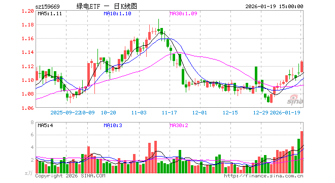 1月19日,绿电ETF(159669)涨1.44%,成交额742.03万元。当日份额增加350.00万份,最新份额为1.02亿份,近20个交易日份额增加1100.00万份。最新资产净值计算值为1.15亿元。