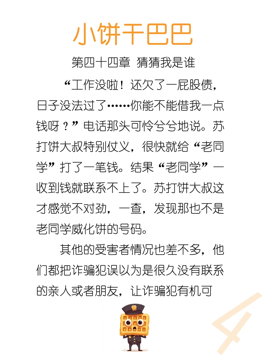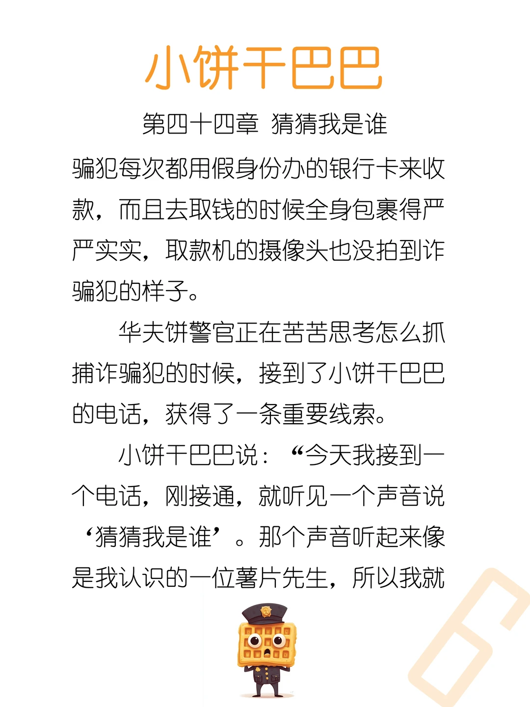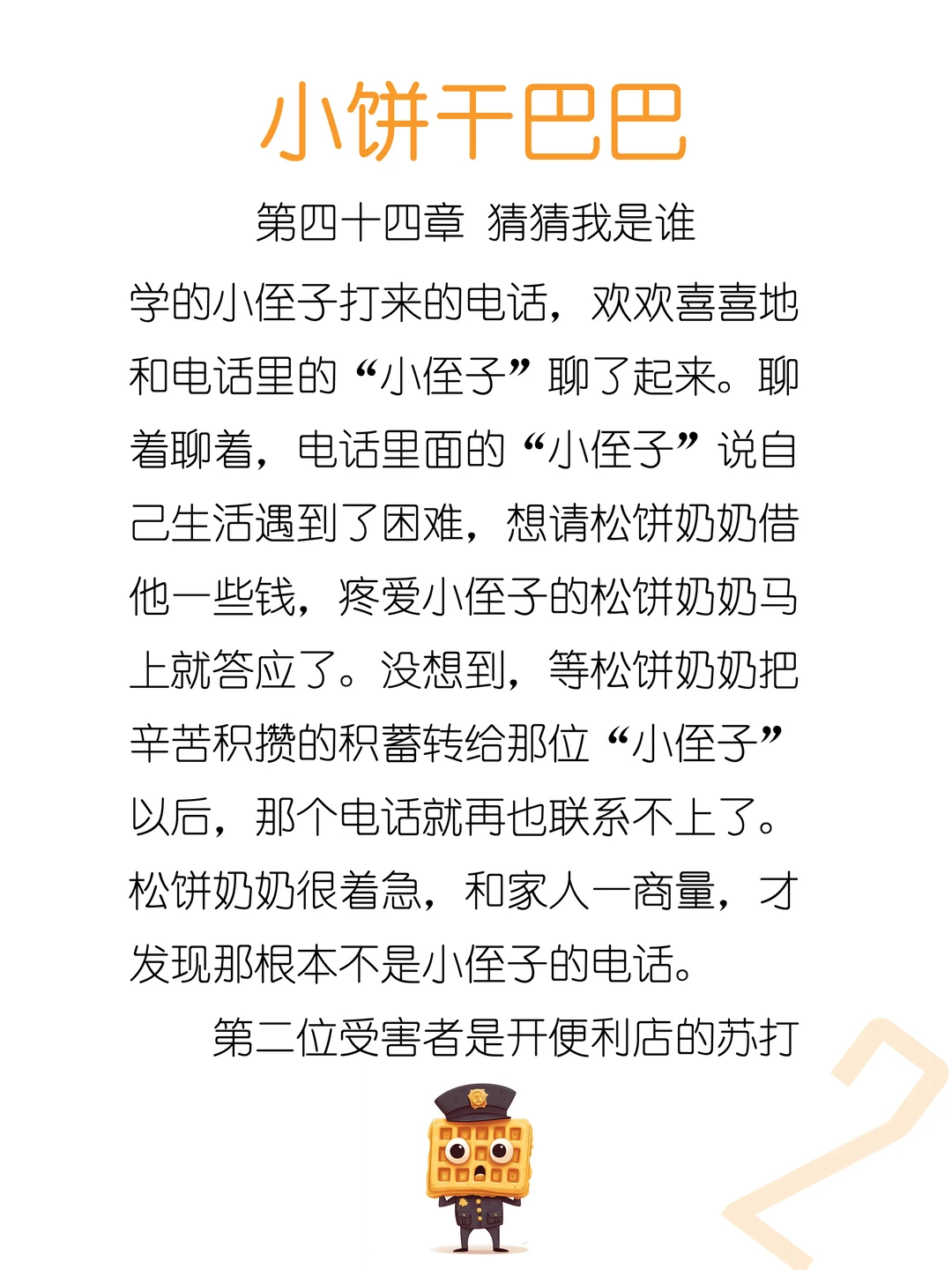 [举手R]晚上好呀~“猜猜我是谁”是咱们这个时代的经典骗局,我想也许有些宝贝没听说过,所以写进故事里。希望宝贝们越听故事越聪明,不会轻易上当受骗啦~