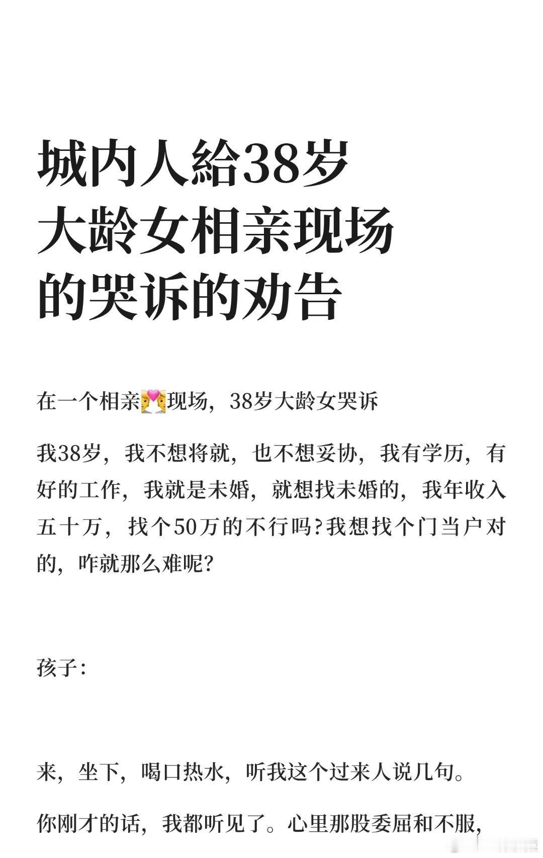 相亲角38岁未婚女绝望咆哮网友给38岁大龄女相亲现场的哭诉的劝告。