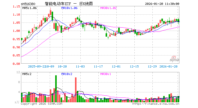 1月20日,截止午间收盘,智能电动车ETF(516380)跌0.94%,报1.050元,成交额249.51万元。智能电动车ETF(516380)重仓股方面,宁德时代截止午盘涨0.97%,比亚迪跌1.36%,立讯精密跌2.09%,汇川技术跌0.83%,三花智控跌0.32%,亿纬锂能跌2.66%,豪威集团涨0.52%,长城汽车跌0.73%,拓普集团涨4.98%,科大讯飞跌3.69%。