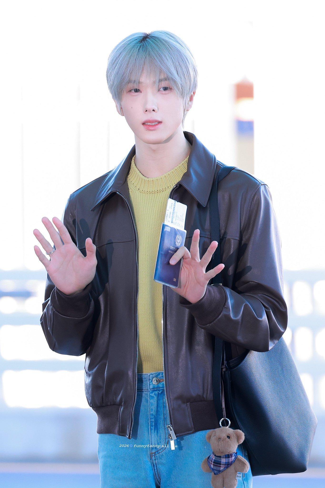 巴黎男装周|机场出发照朴志晟 —— SYSTEM 2026秋冬大秀JISUNG 受SYSTEM品牌邀请即将亮相新季大秀开启首个巴黎时装周之旅,银灰发色与黄色毛衣的搭配少年感十足。男装周朴志晟巴黎时装周