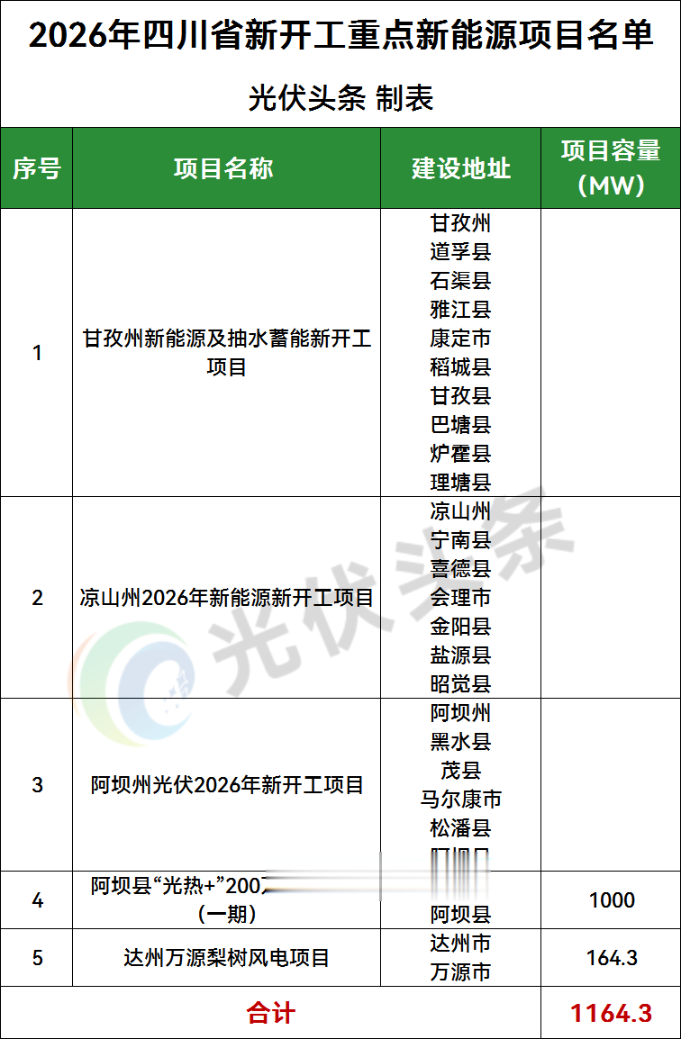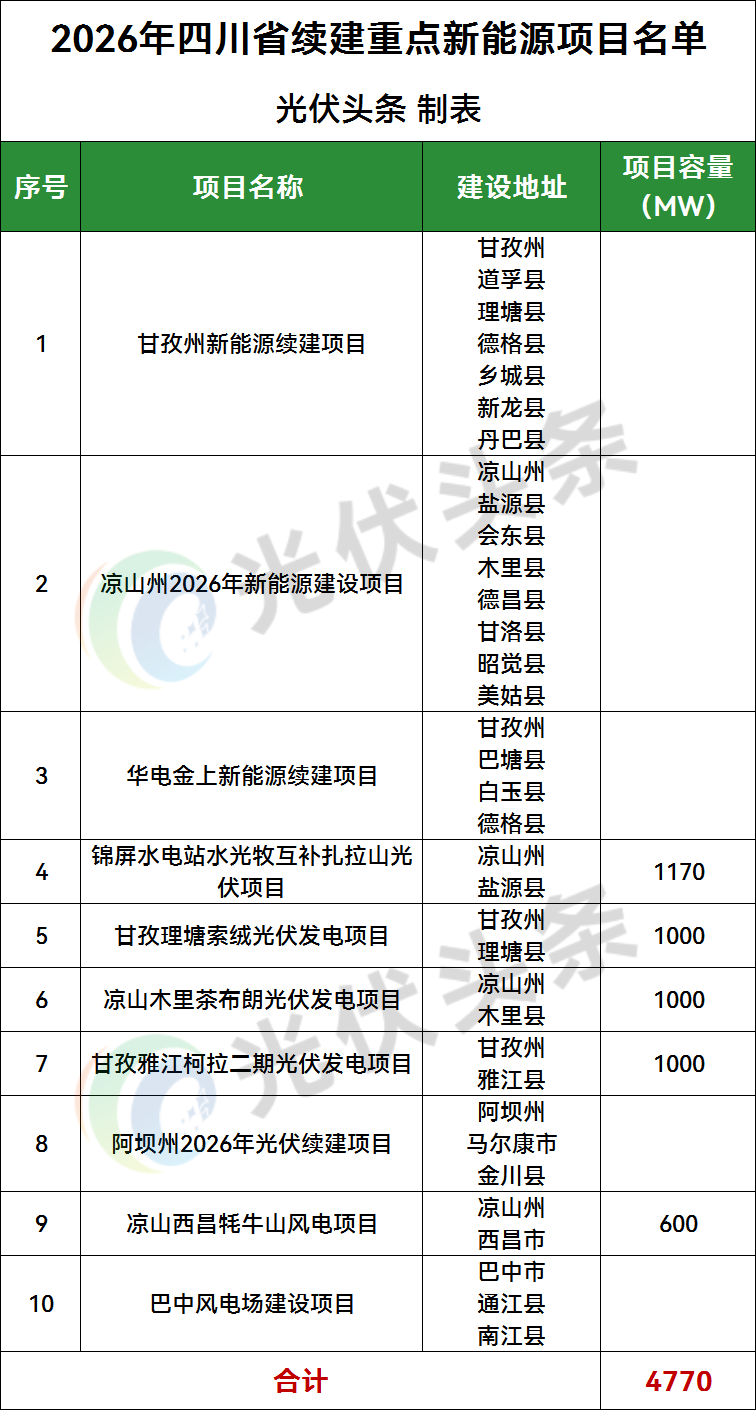 光伏头条获悉,1月19日,四川省人民政府发布关于做好2026年四川省重点项目工作的通知。