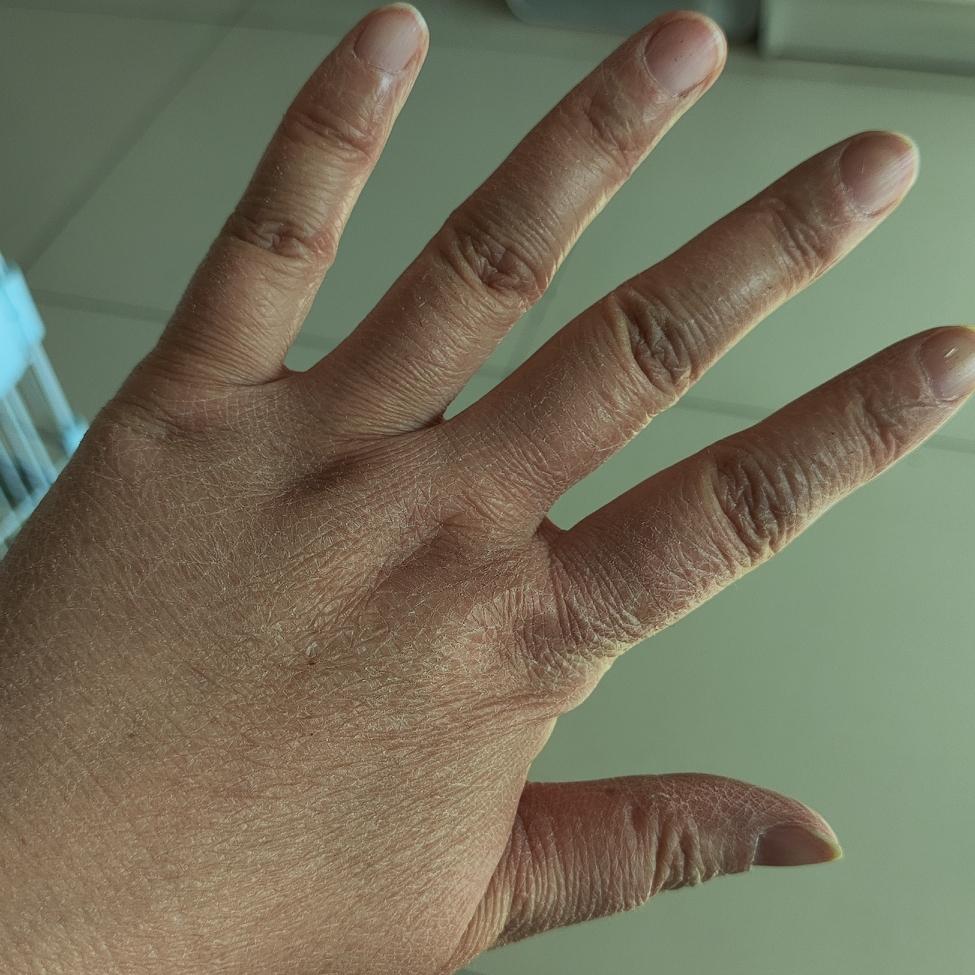 43岁中年女人的手,刚拖完地…… 刚拖完地,看了一下自己的手,乱七八糟的纹路。