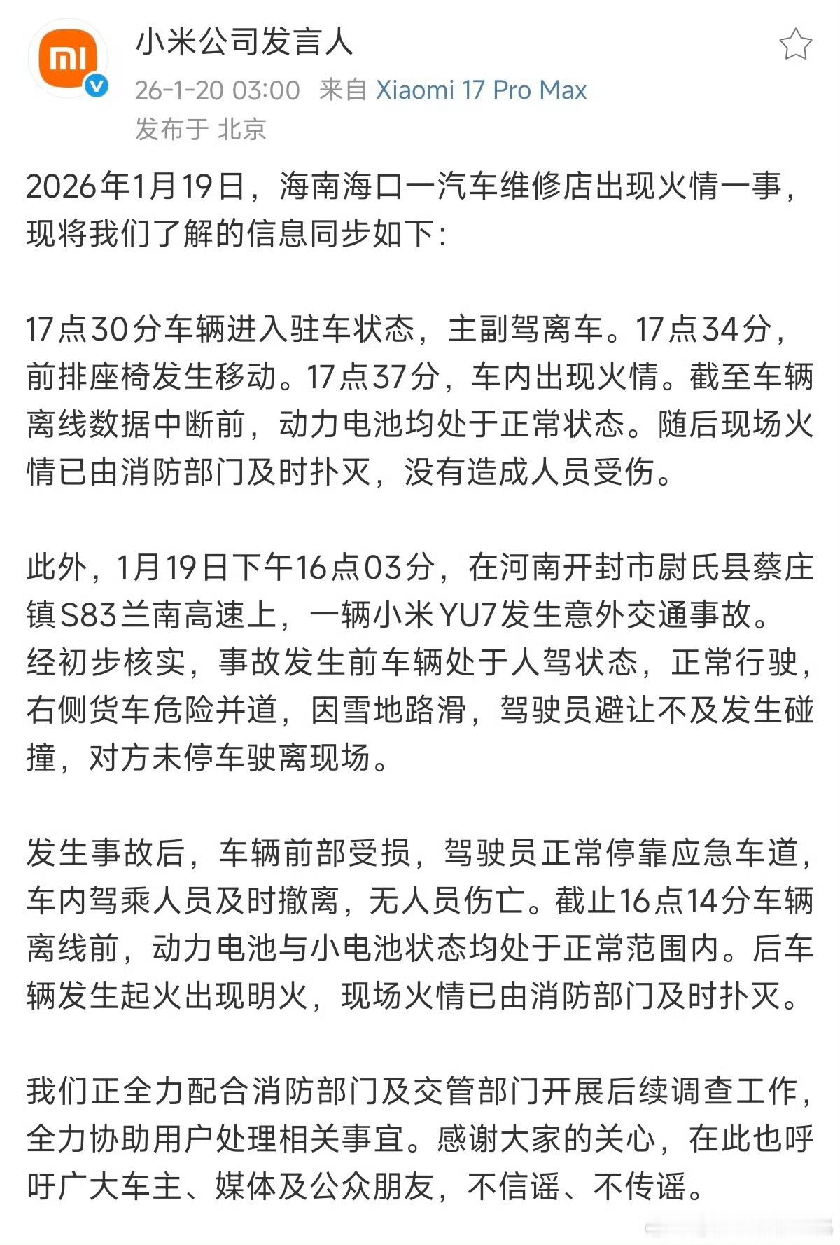 再看一百遍也是车内起火导致的。同样是车内起火,看到尊界s800视频时候我也是说大概率是里面一些东西起火导致的,怎么现在小米有类似的事情有些生物就理解不了了?