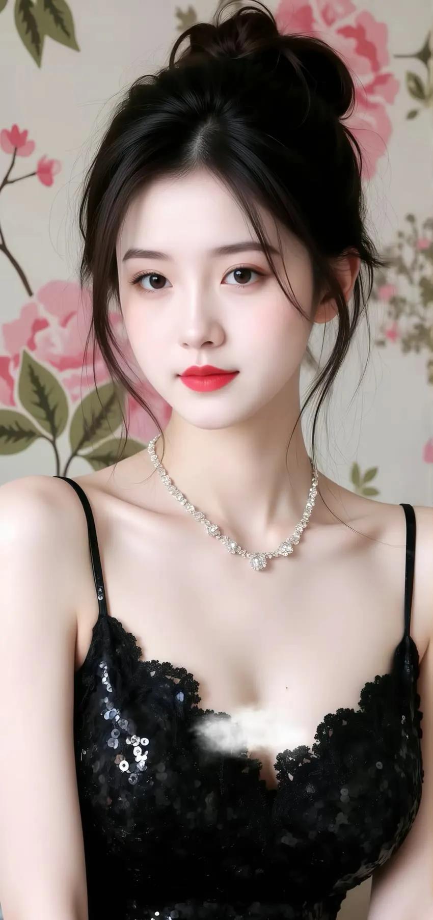 微笑的魅力,闪耀的耳环,优雅的黑裙,完美结合!