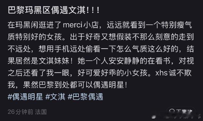 文淇巴黎被偶遇文淇巴黎被偶遇,这么幸运的吗!文淇巴黎看书被偶遇