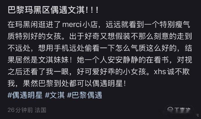 文淇巴黎被偶遇文淇巴黎被偶遇,这么幸运的吗!文淇巴黎看书被偶遇