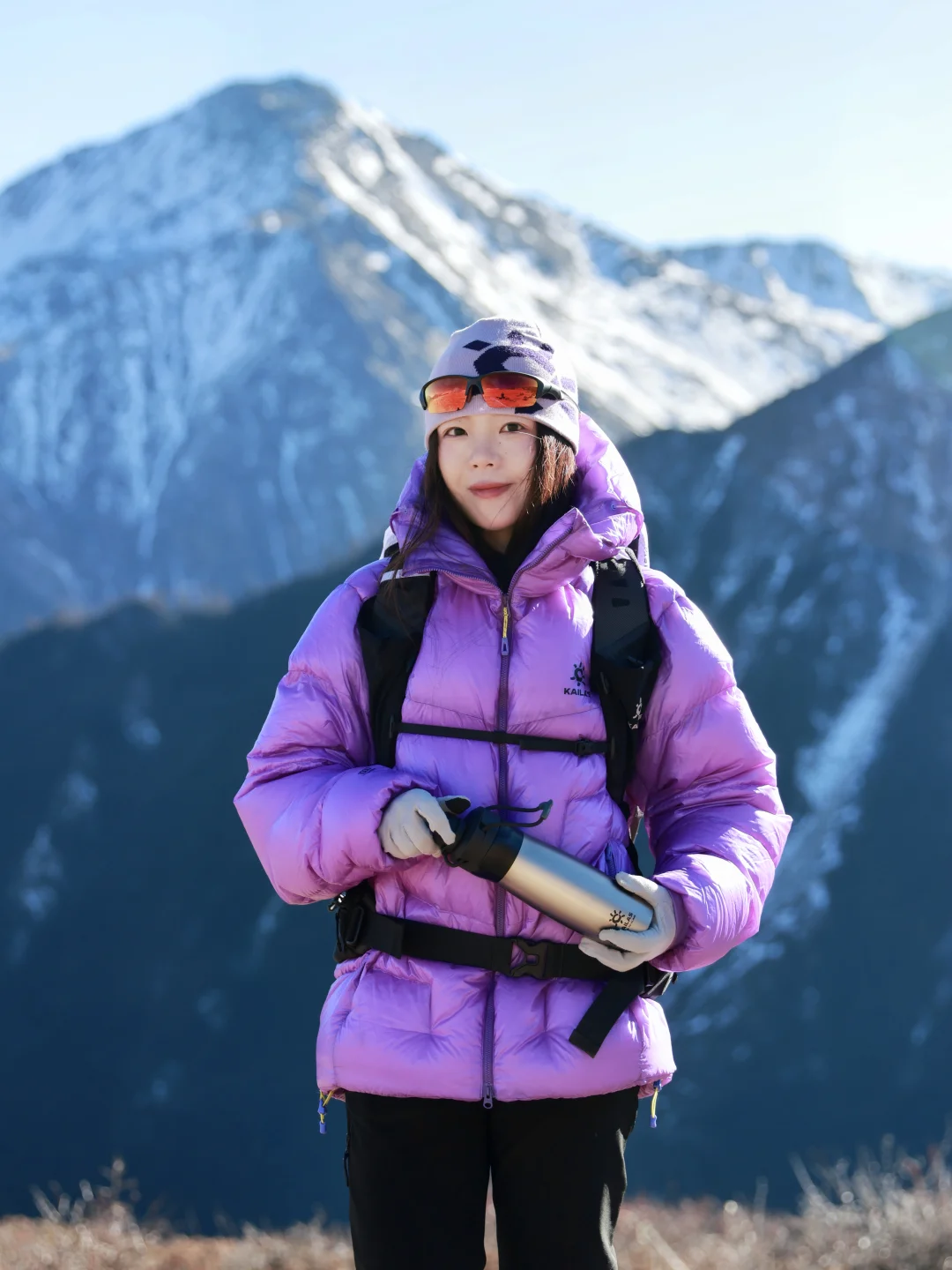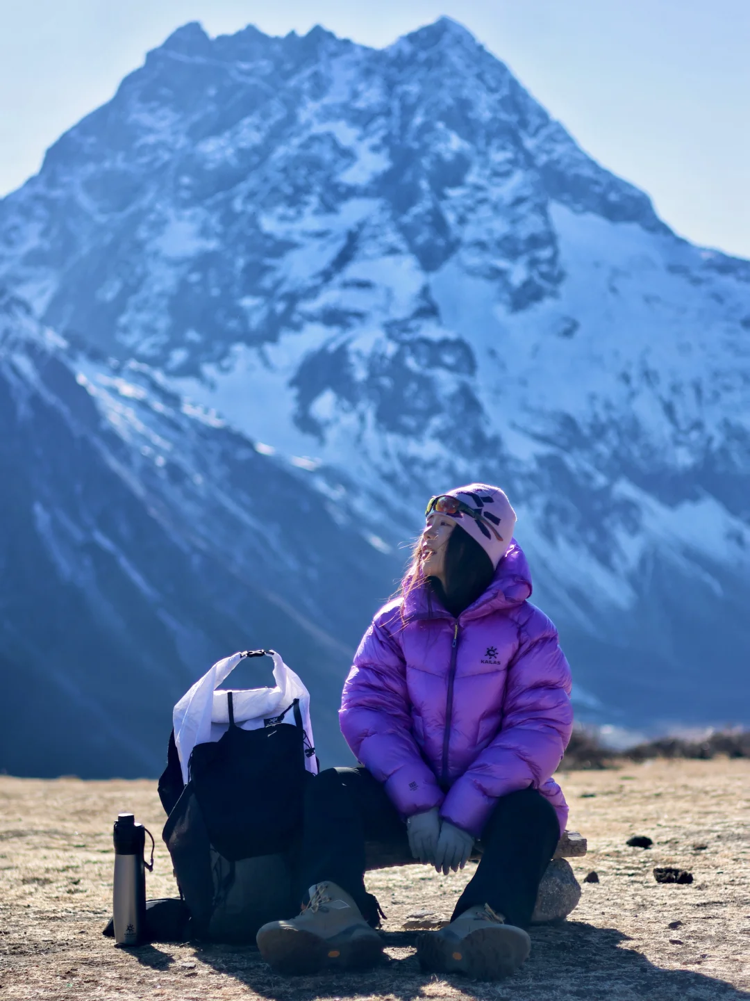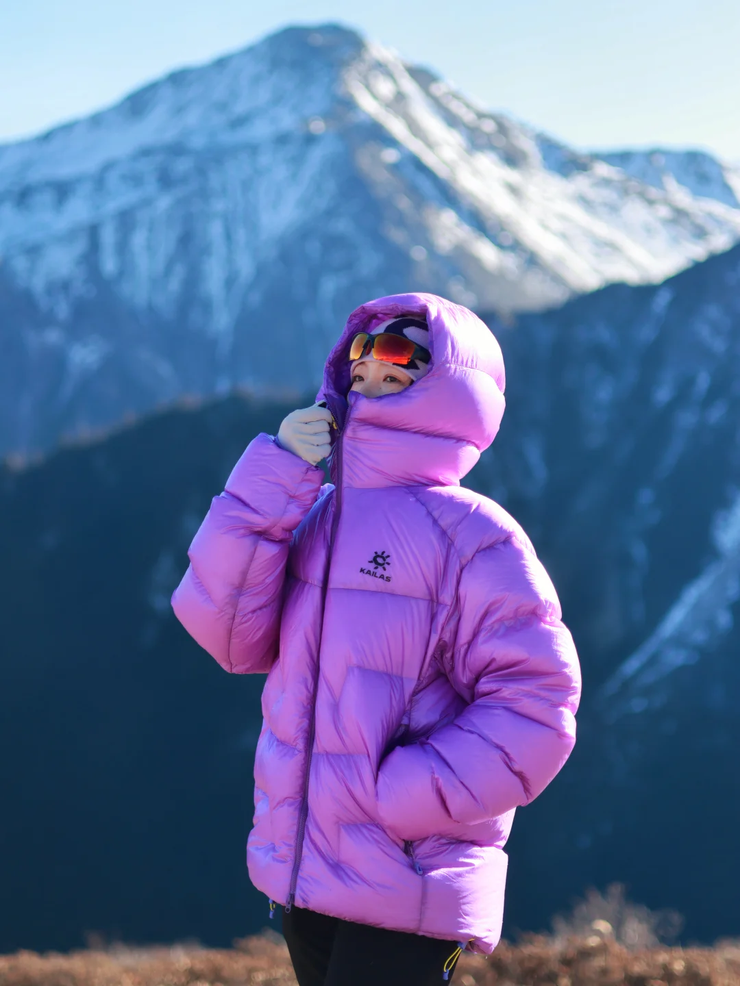 这次我又穿着凯乐石的5000GT雪山羽绒服来到了香格里拉的白马雪山,除了颜色好看之外,它还有1000蓬拒水鹅绒,450g轻量却能锁住温度,让我在山上静态保暖时抵御雪山凛冽的寒风,无论是在营地,还是在山上休息,它都能让我温暖舒适的拥抱大自然